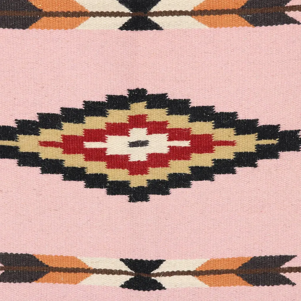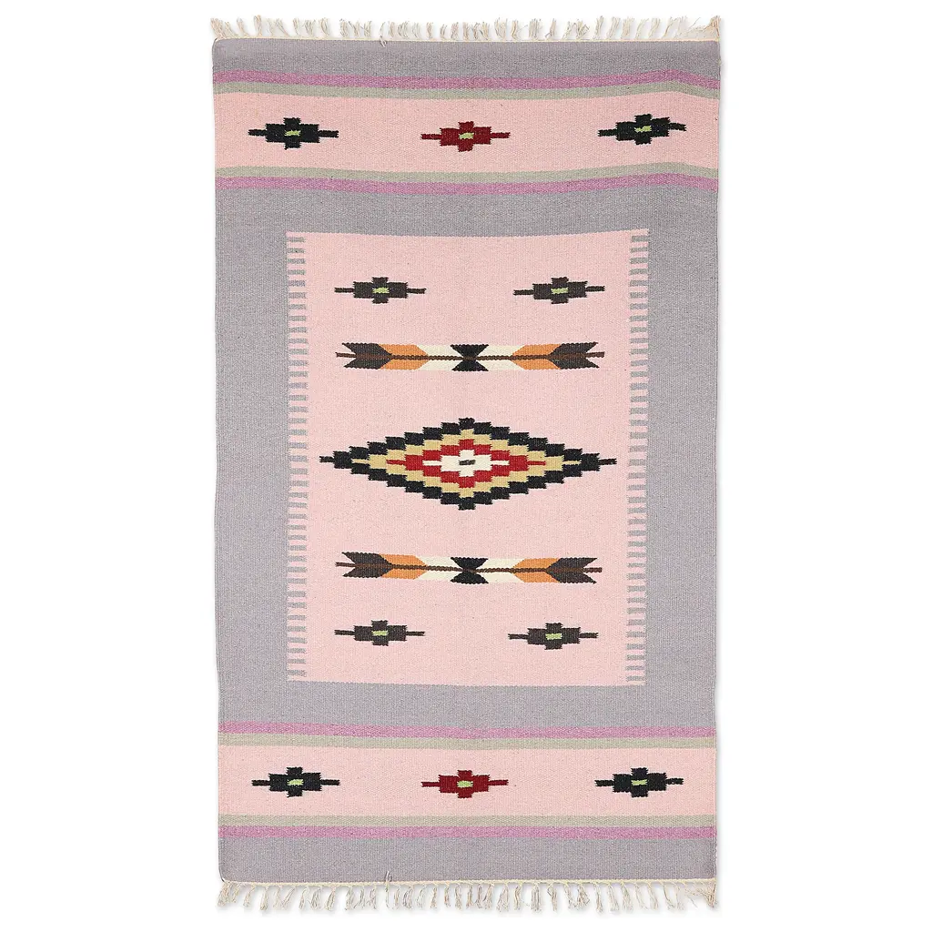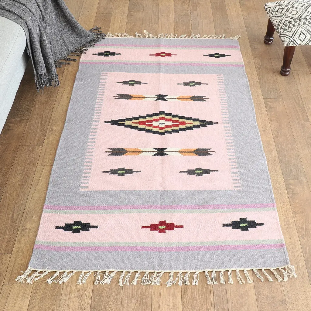 Handloomed Pink Wool Area Rug With Geometric Motifs (3x5)- Pink Comfort