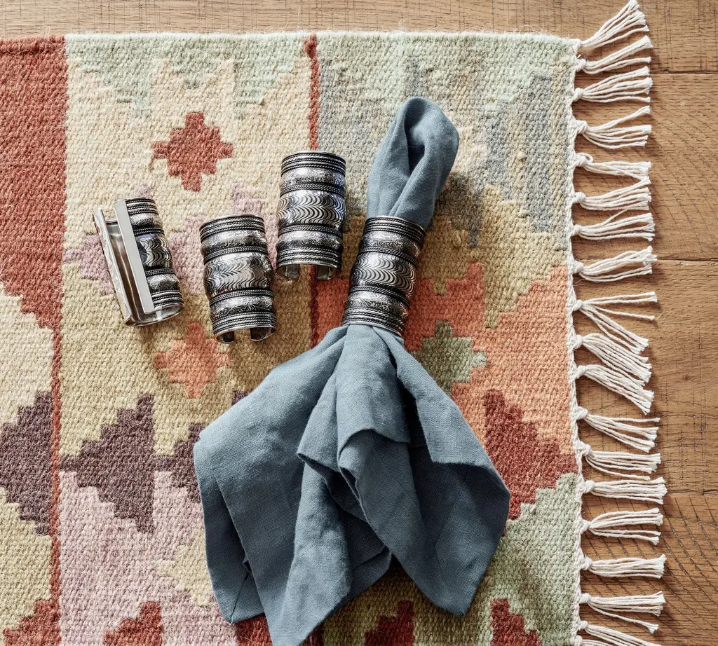 Nothing suits a home decor better than a wool area rug crafted by skilled Indian artisans famous for their handloomed creations. Presented by Sonik Sethi, this pink and blue design features geometric motifs and sweet fringes that will add a cute aura to your interiors.
