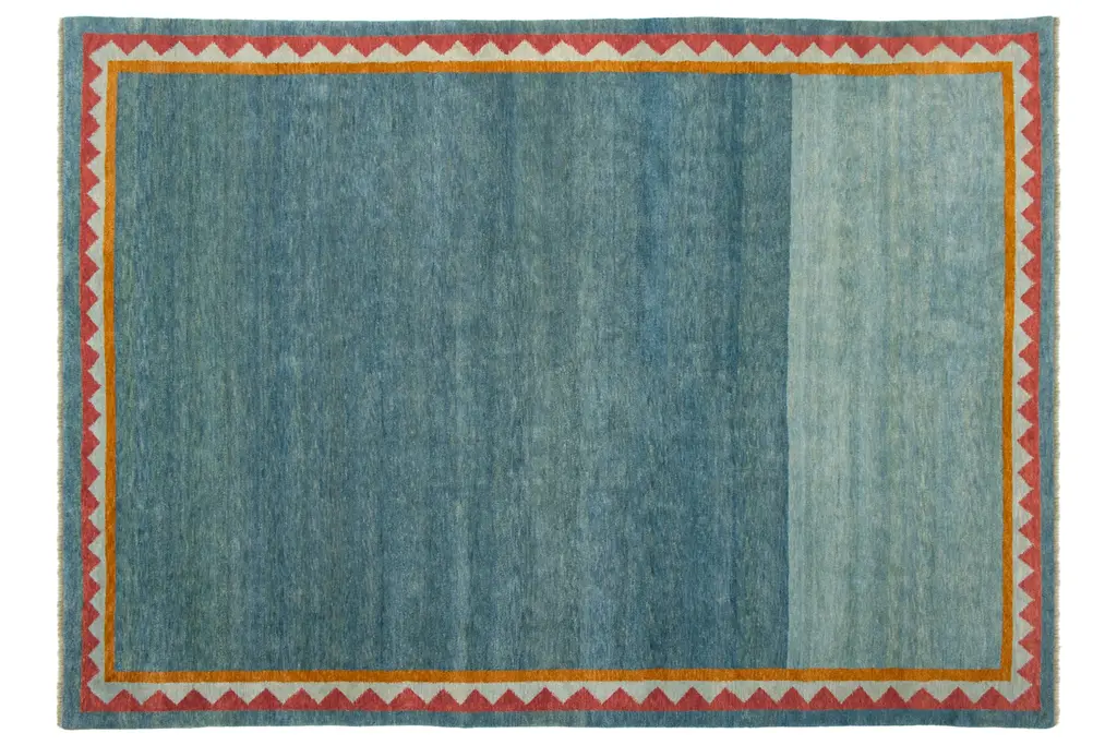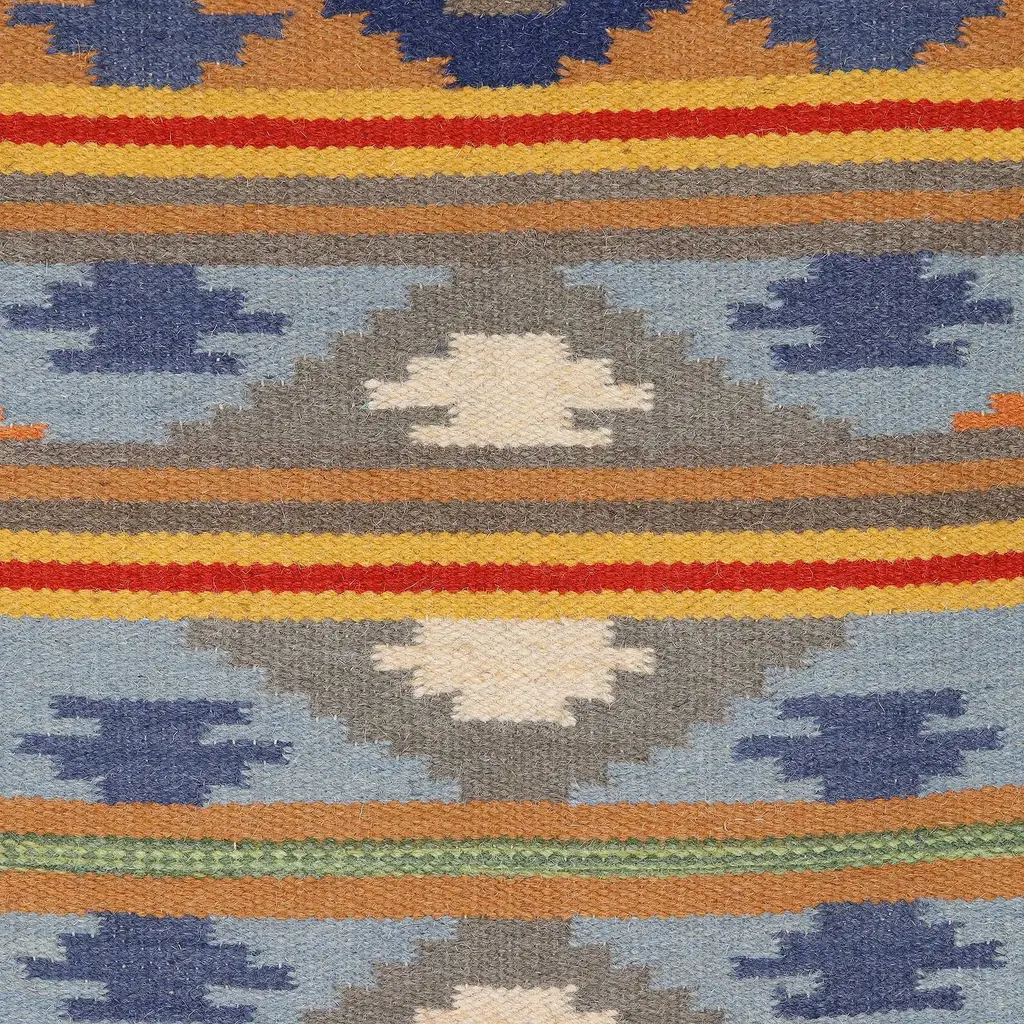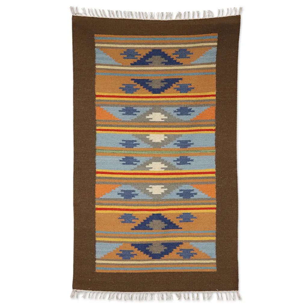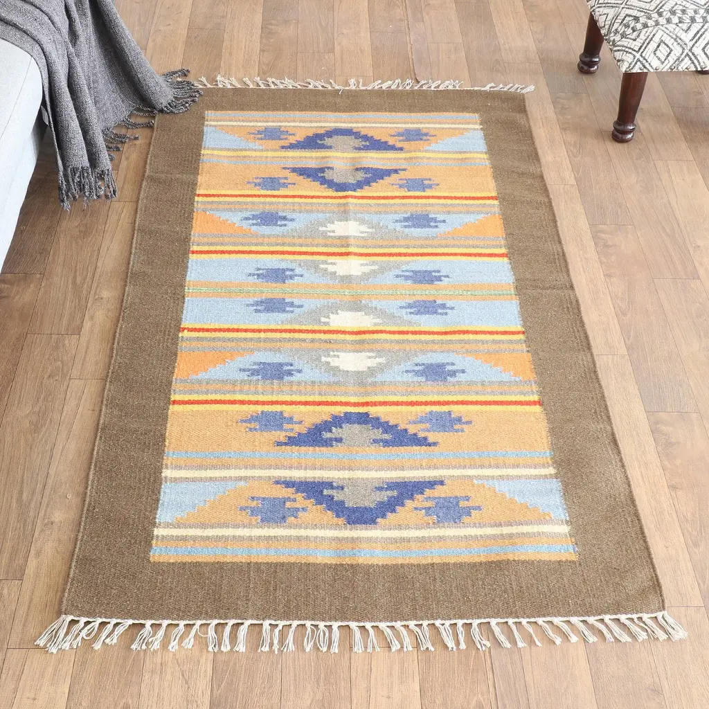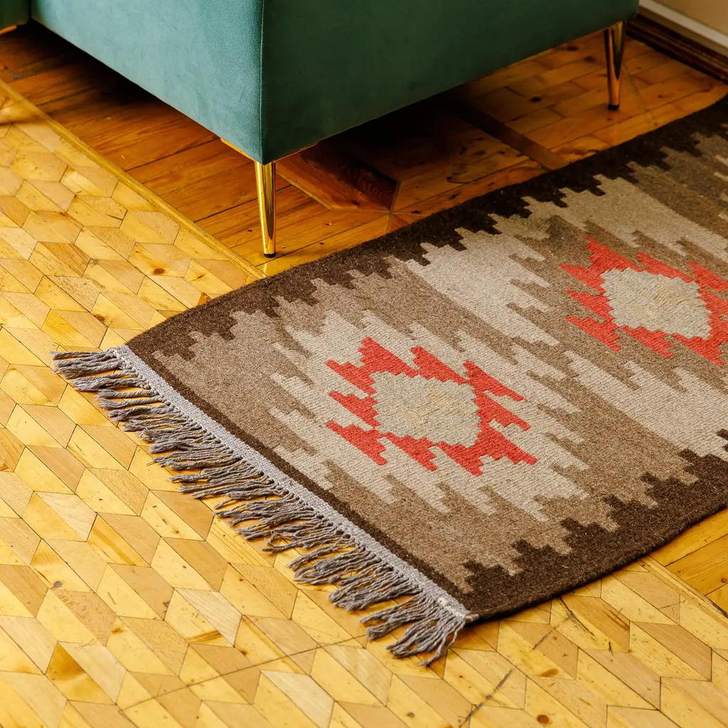 Indian artisans create a charming addition to your home decor, working with wool yarns in a traditional loom. Using a multicolor palette, this dapper area rug presented by Sonik Sethi also comes with little fringes for a merry look.