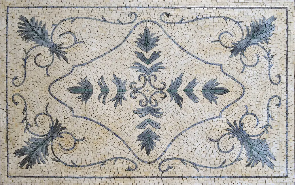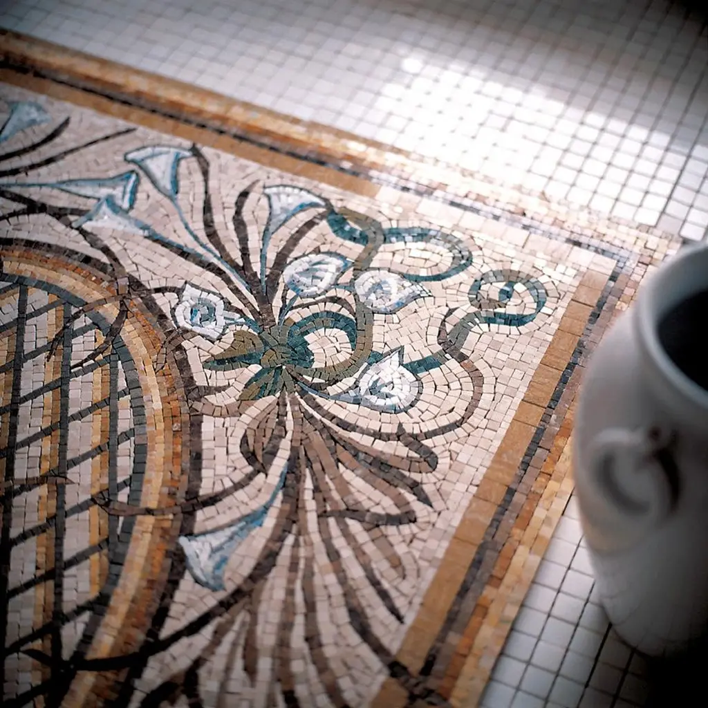 Handmade Artistic Marble Mosaic Rug Dimension And Colors Customizable