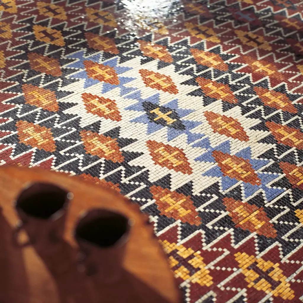Handmade Artistic Marble Mosaic Rug Dimension And Colors Customizable