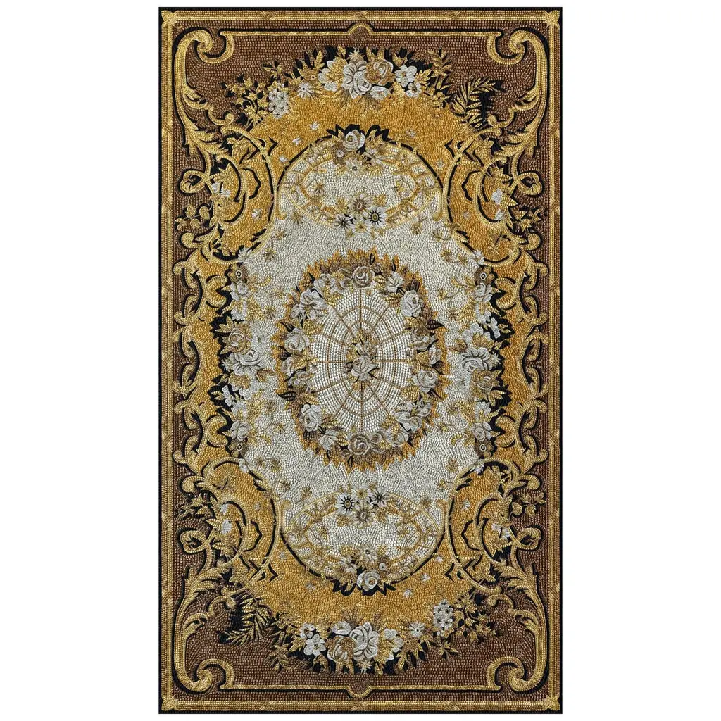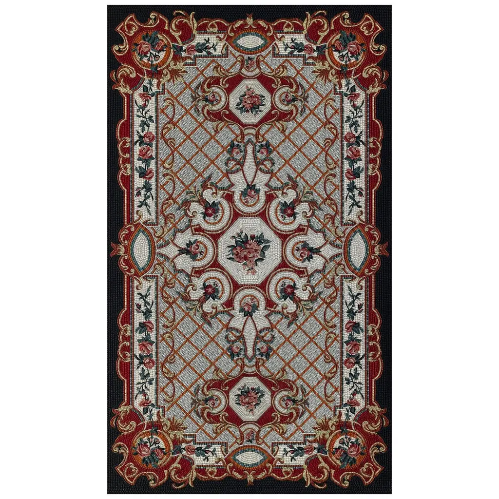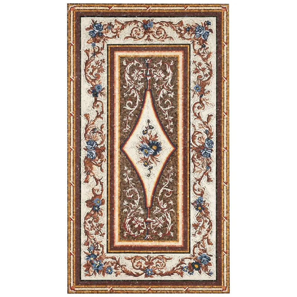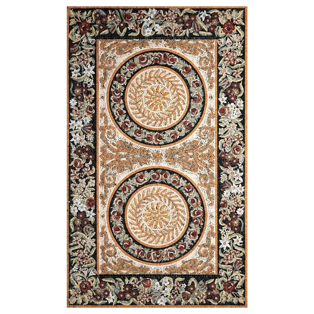 Handmade Artistic Marble Mosaic Rug Dimension And Colors Customizable