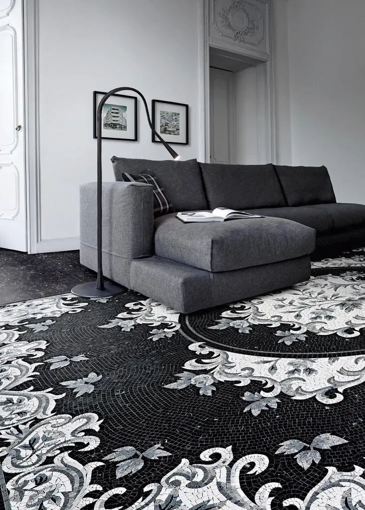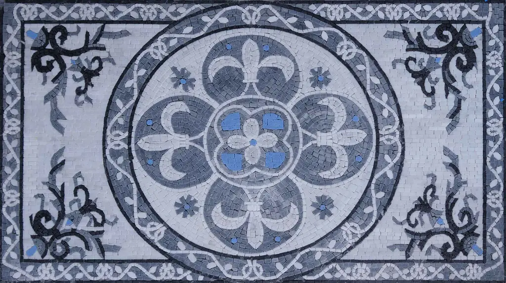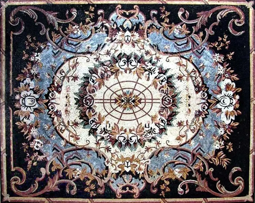 Handmade Artistic Marble Mosaic Rug Dimension And Colors Customizable