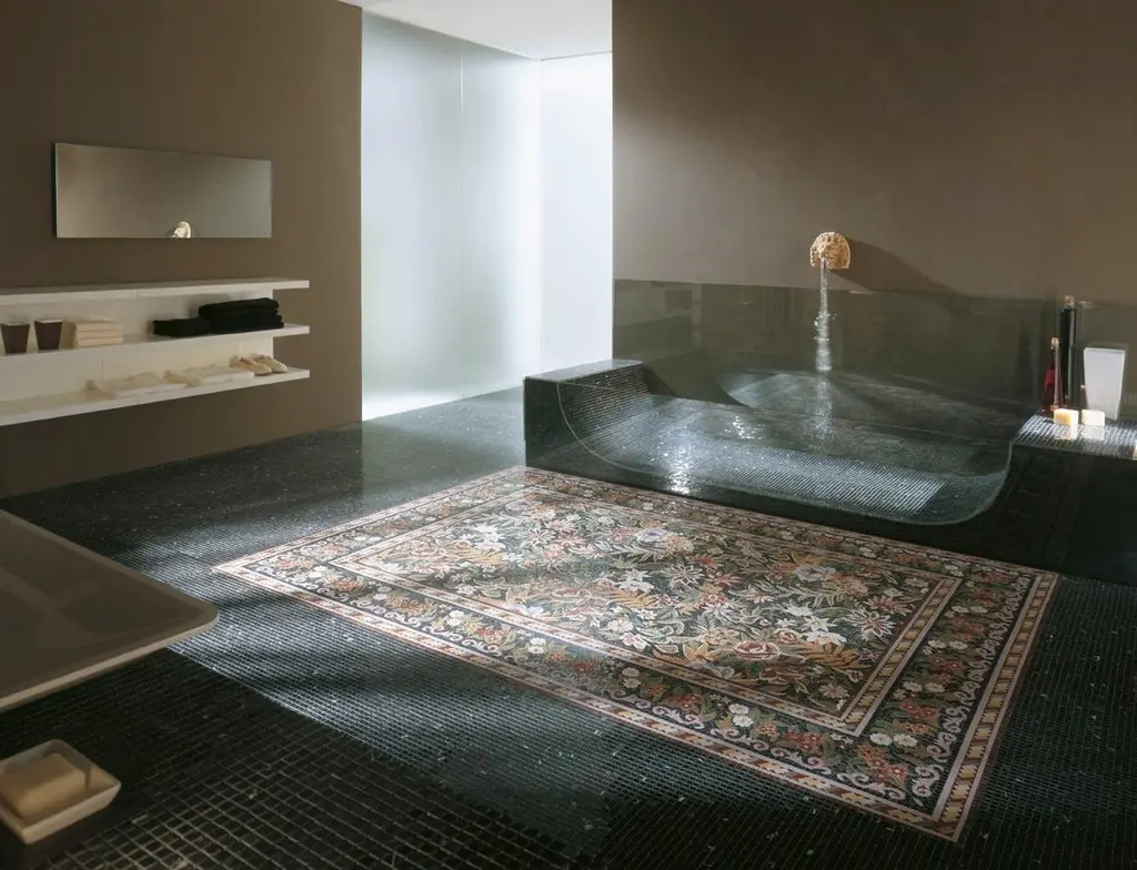 Handmade Artistic Marble Mosaic Rug Dimension And Colors Customizable