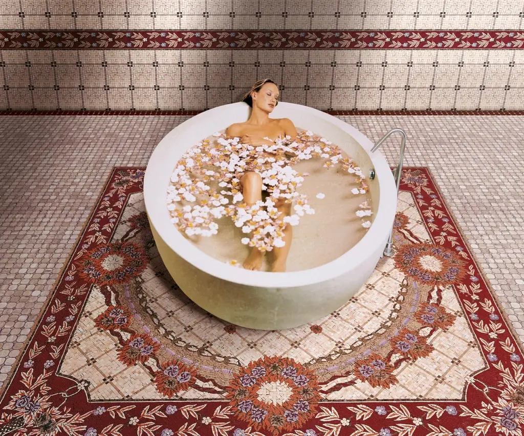 Handmade Artistic Marble Mosaic Rug Dimension And Colors Customizable
