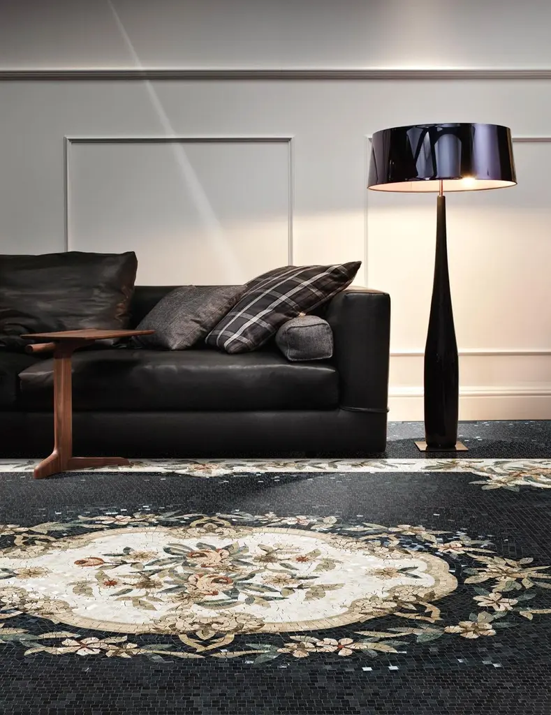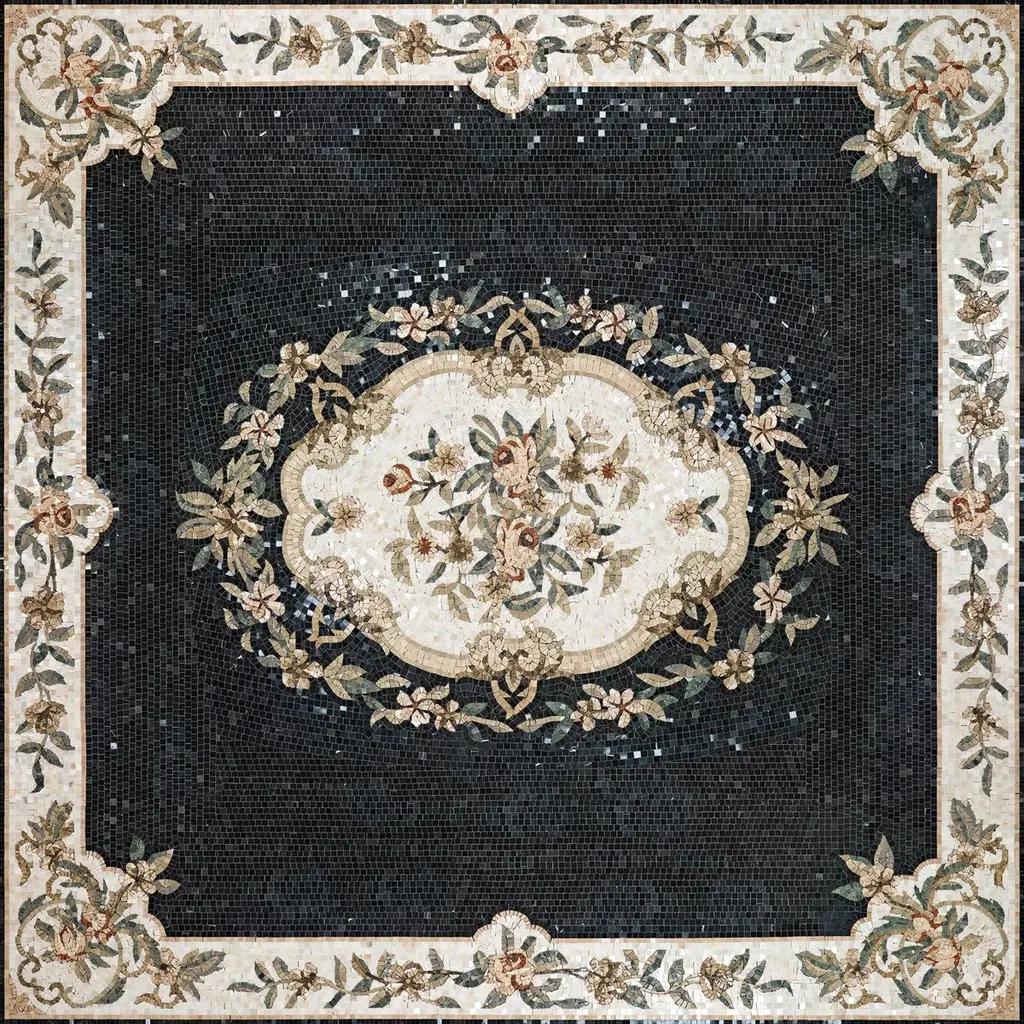 Handmade Artistic Marble Mosaic Rug Dimension And Colors Customizable
