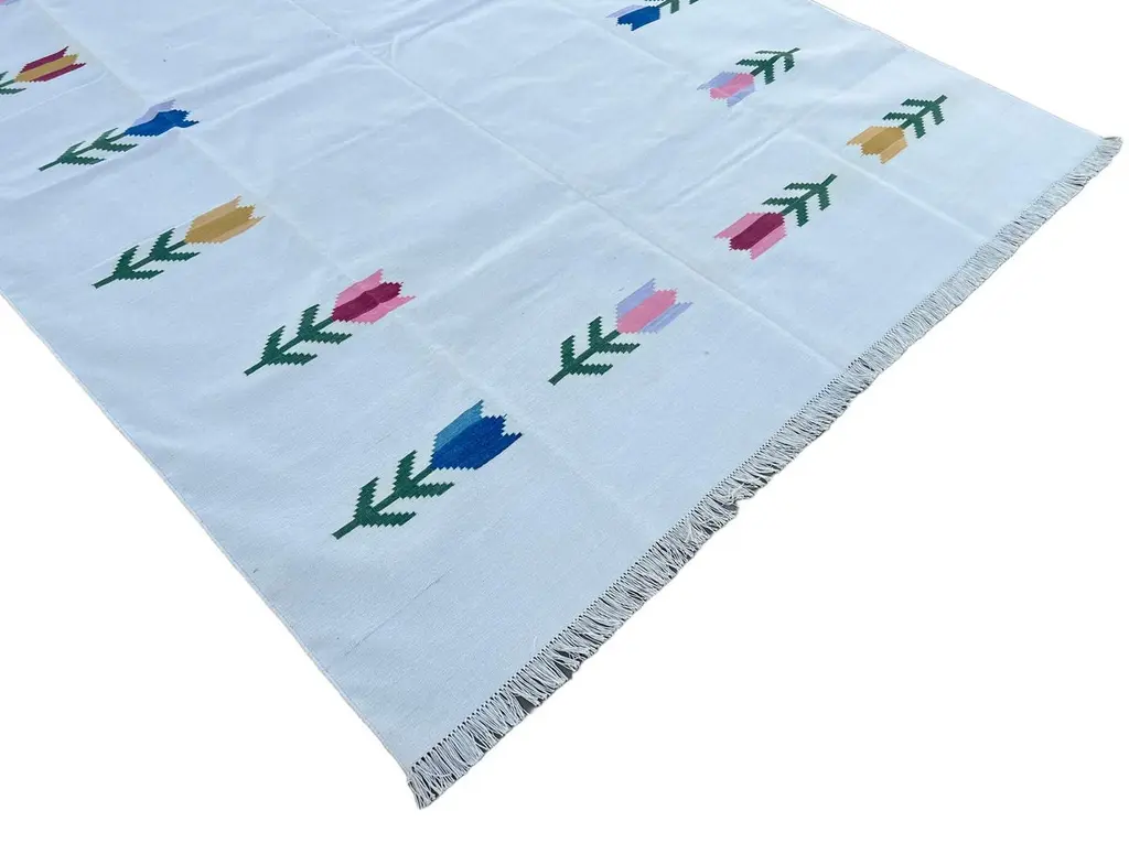 Cotton Natural Vegetable Dyed White And Green Leaf Patterned Indian Rug-6'x9'These special flat-weave dhurries are hand-woven with 15 ply 100% cotton yarn. Due to the special manufacturing techniques used to create our rugs, the size and color of each piece may vary a little. The striking colour is achieved using natural vegetable dyes. We recommend that rugs are always used with an anti-slip underlay. Rugs should be regularly brushed or hovered with a suction-only appliance to prevent the build-up of damaging dust and grit. To avoid fading over time, rotate and flip your rug regularly.We recommend that rugs are always used with an anti-slip underlay. Rugs should be regularly brushed or hovered with a suction-only appliance to prevent the build-up of damaging dust and grit. To avoid fading over time, rotate and flip your rug regularly.Please note - due to the handmade nature of this rug, size variations of 2-3 inches are to be expected (both length and/or width). The rugs are washed by hand in an iron frame so often the size is increased after washing. As a result, the finished rug size may be slightly longer or wider than the dimensions listed.