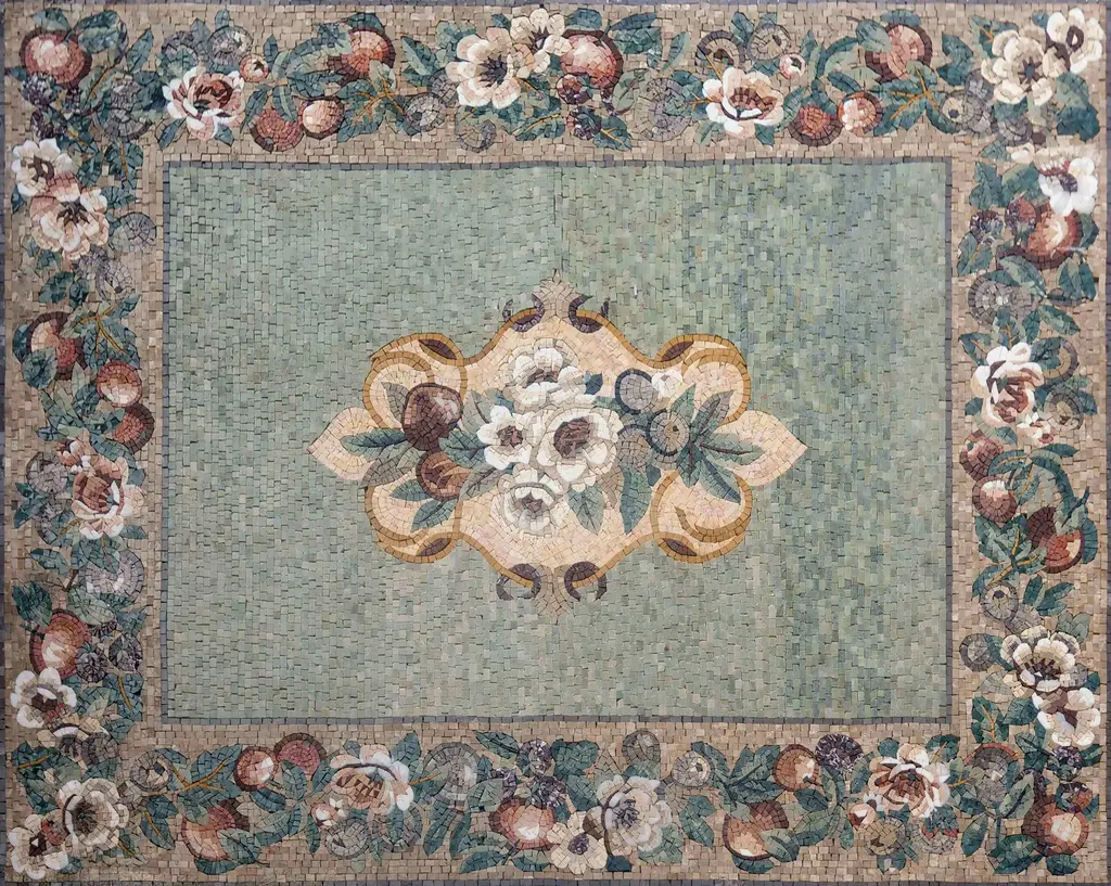 Handmade Floral Rug Mosaic Art – Elegant Decorative Tile Design - 168cm X 134cm (66" X 53") / With Frame