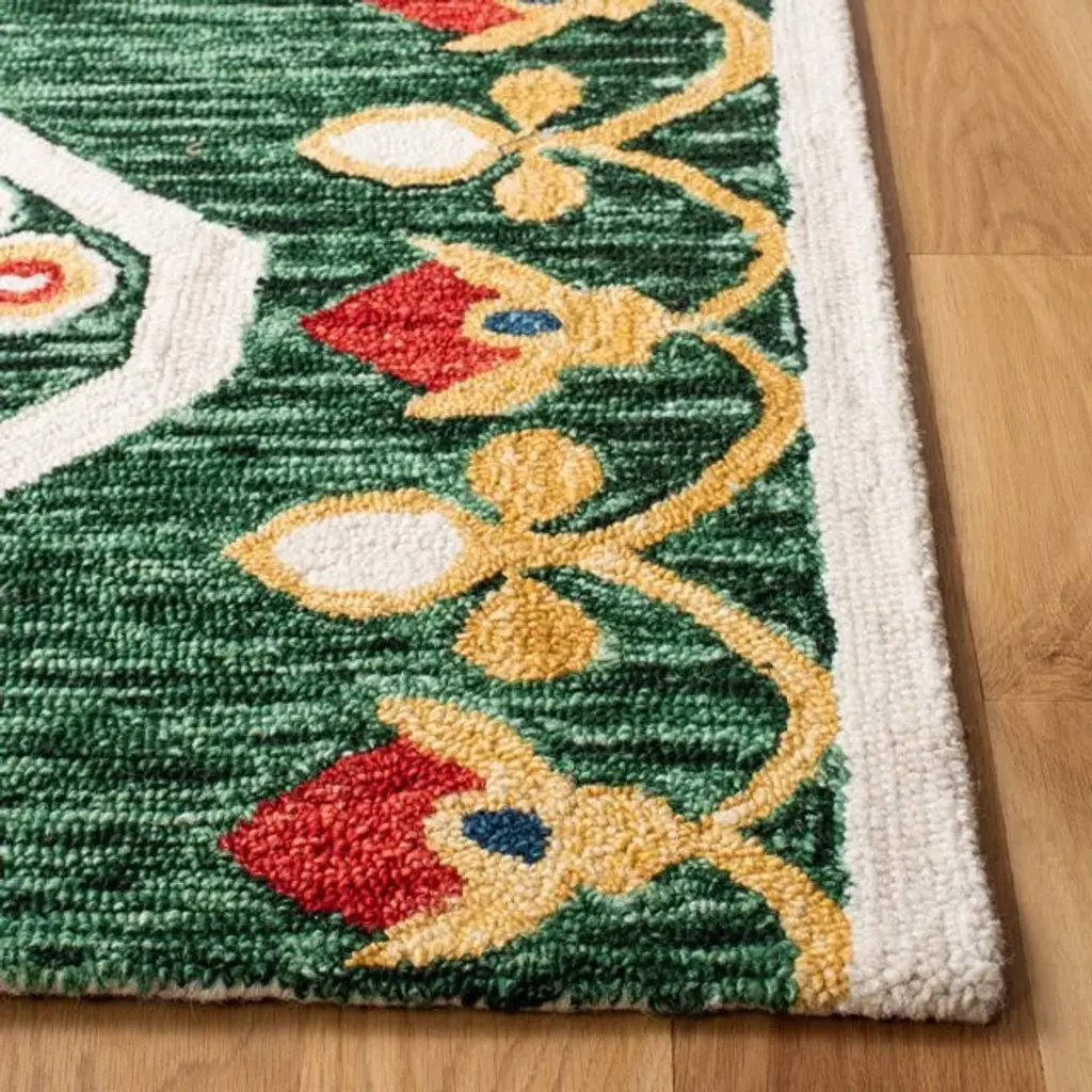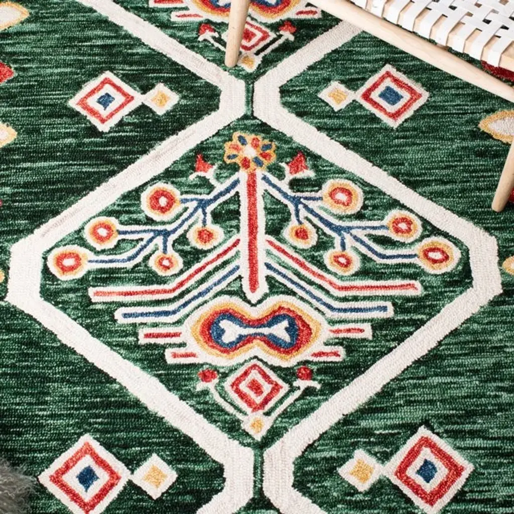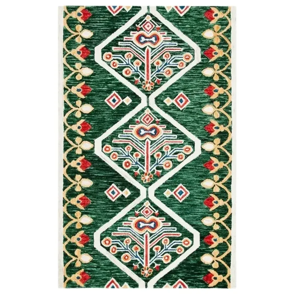 Handmade Green/ivory Wool Rug, Contemporary Tribal Geometric Pattern, 5' X 8'