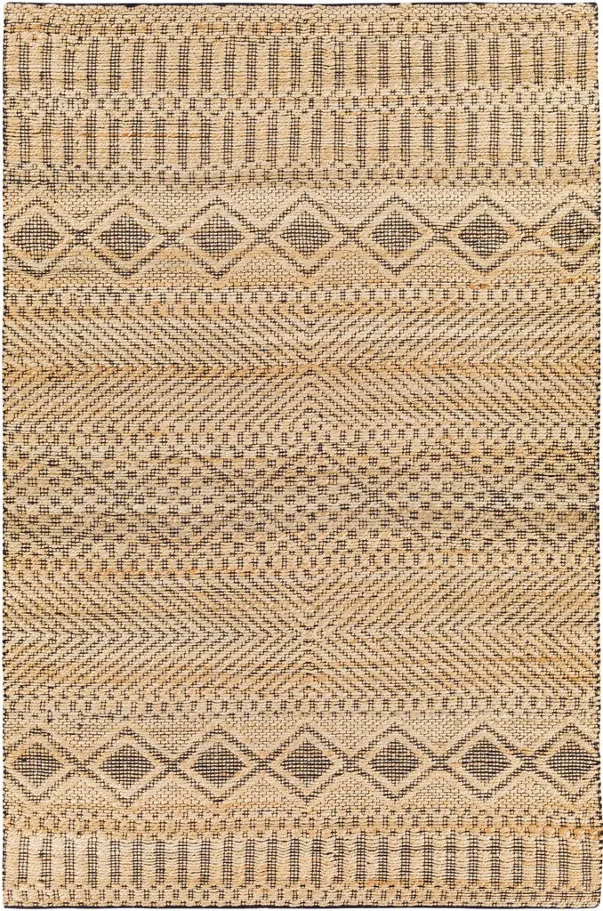 Crafted in India with care, this eco-friendly rug features a striking diamond pattern in natural jute and black accents, offering a perfect blend of rustic charm and contemporary style. Ideal for living rooms, dining areas, bedrooms, or entryways, it effortlessly enhances any space with texture and character. Made from durable, sustainably sourced jute, this rug is designed to withstand everyday use while maintaining its artisanal beauty. Whether anchoring a room or serving as a standout decor piece, this handcrafted rug brings timeless elegance and functionality to your home. Transform your space with this unique and eco-conscious design.
