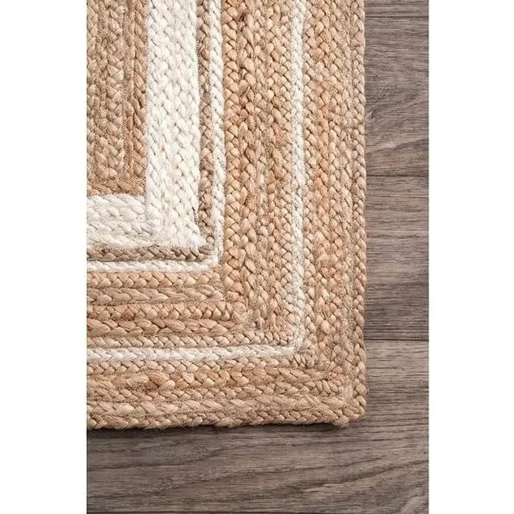 Material: 100% Natural Jute with White Jute Design.Slight color variation & weave irregularities may occur making each rug unique.Hand woven in a way such that rugs is long lasting and stands up.Reversible for double the usage of rug.Regularly Vacuuming, Rotation and occasional gentle shake will keep this rug good looking.