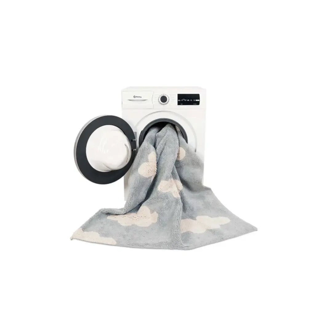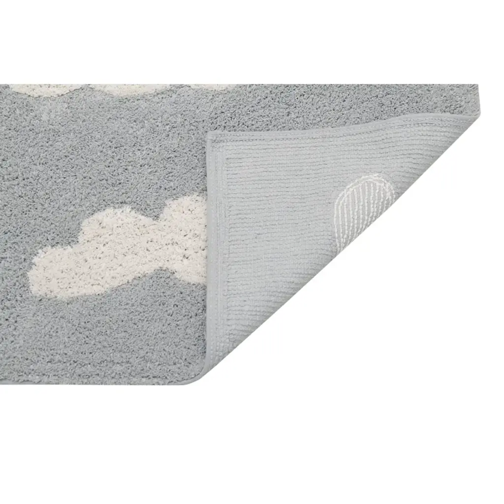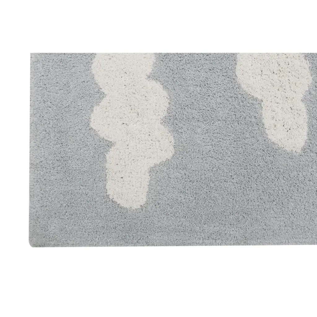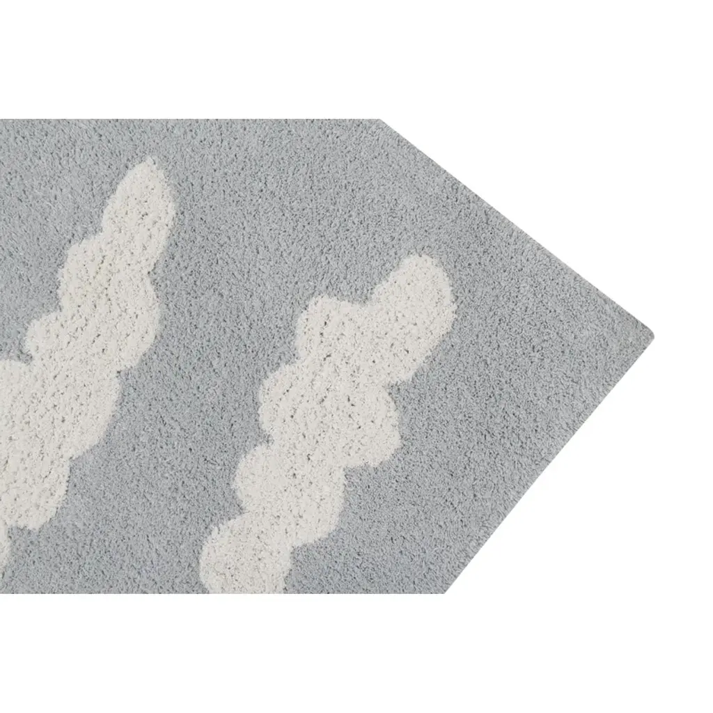 This washable kids' rug is like a piece of heaven. The perfect finishing touch for any bedroom or playroom, in an elegant neutral gray hue. Time to hop onto fluffy clouds and surf the sky for some daydreaming fun!