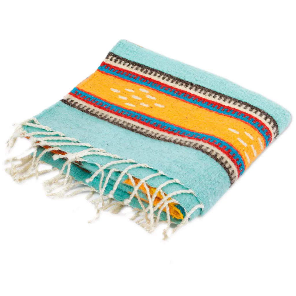 Handwoven Aquamarine And Marigold Zapotec Wool Rug (2x3)- Marigold Gems