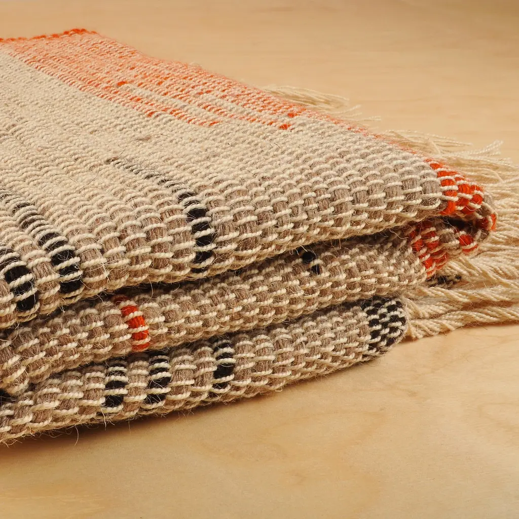 Armenia's Goris Artisan Group works with natural wool yarns in orange, black and beige hues to create this gorgeous home accent with a touch of modernity. The team uses traditional techniques to weave this area rug by hand, adding a minimalist pattern that shows a sophisticated version of the region's luxurious textiles. As a graceful touch, the piece comes with fringes on each end.