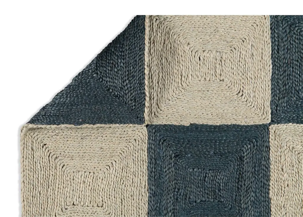 Handwoven Jute Block Rug, 8' X 10', Navy And Sky Blue