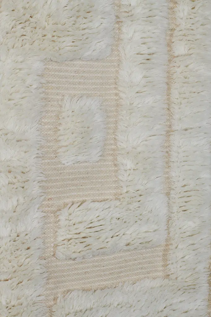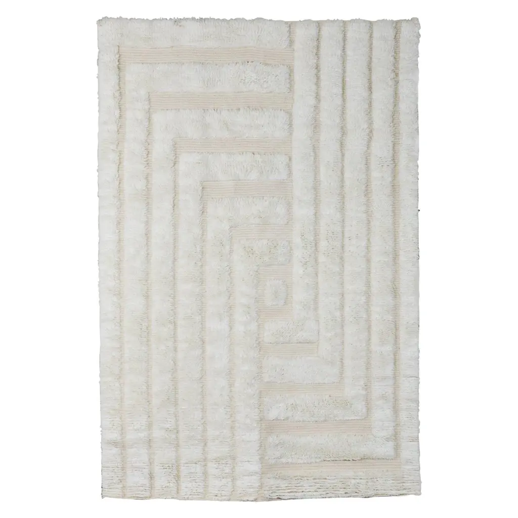 Handwoven Shaggy Labyrinth Wool Rug White Small