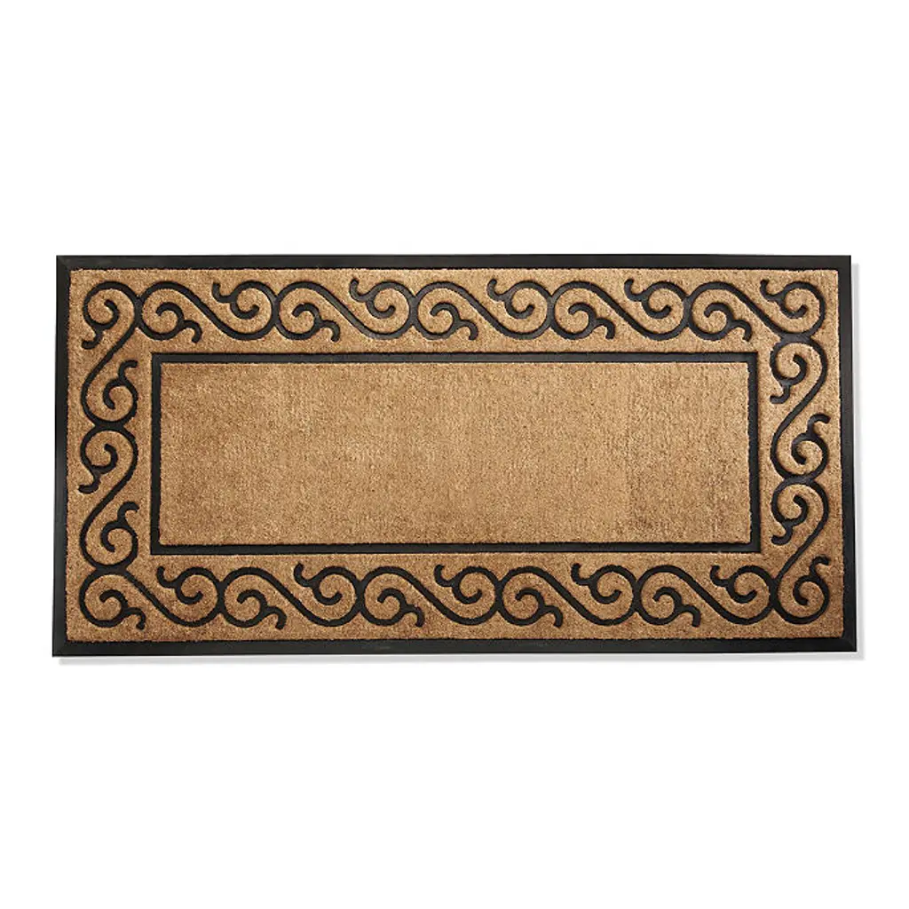 Be prepared for the mud and winter snow seasons: our Hanna Scroll Border Monogrammed Door Mat is ready for both. Thick, natural coir bristles scrub moisture and dirt from footwear. The scrolling rubber border enhances the mat's scraping power and black rubber tread holds mat in place. Each mat can be hand-stenciled with a single letter monogram, printed in fade-resistant black ink.Available in a non-monogrammed versionWoven from natural coir fibersProtects your floors from mud, sand, water, snow, and dirtScrolling rubber border provides extra scraping power and treadPersonalize with a single-letter monogram, select from A-ZView complete care instructionsDo not place in area where it will remain wet for long periods of time with no sunlight for dryingThe natural dyes can produce a brown stain that is difficult to remove from certain surfaces; using a rug pad is recommended Add an outdoor rug pad (sold separately) to increase water drainage and prevent slippingNot recommended for use on porcelain, natural stone, slate, granite, cobblestone, or limestone porches that have been chemically sealed If you are not satisfied with this specific monogrammed item, you may return it within 90 days, and we'll replace it or refund the cost (excluding Shipping and Handling fees). Imported.At Frontgate, our primary focus is quality. We guarantee that every product we sell will stand up to the supreme test – our customers' satisfaction. To learn more about our policies, visit our Shipping & Processing, Returns & Exchanges and Warranty & Price Guarantee pages.