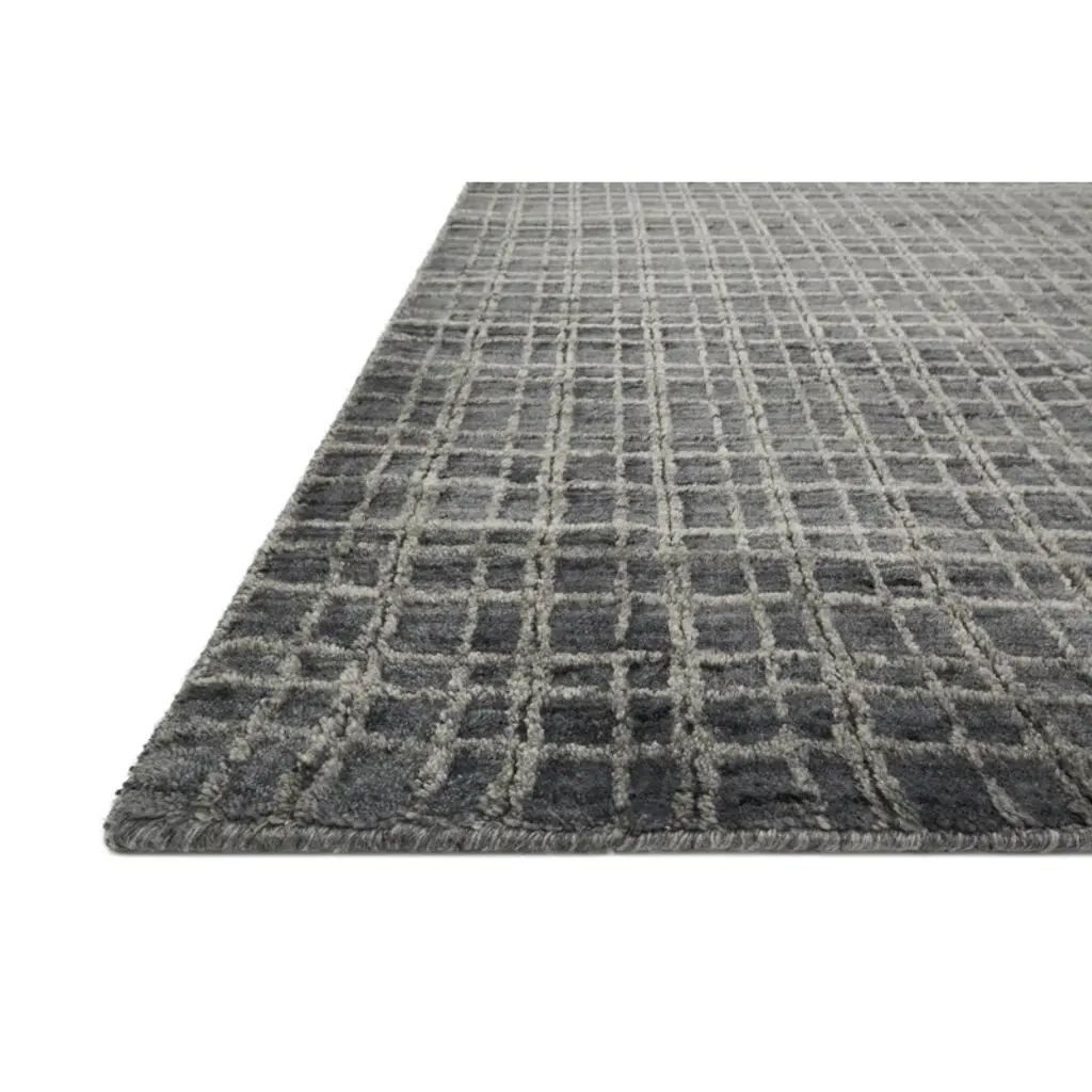 Hand-loomed in India by master artisans, this sleek area rug has a rich pile height and eye-catching sheen that shifts hues in changing light. It's made from a blend of wool and viscose and has a modern geometric pattern accented with hues of gray. Its plush 0.38" pile height makes it a great choice for your living room, or as the first thing your feet touch right when you get out of bed. To help reduce shifting and sliding and keep your new rug in place, we recommend adding a rug pad underneath.