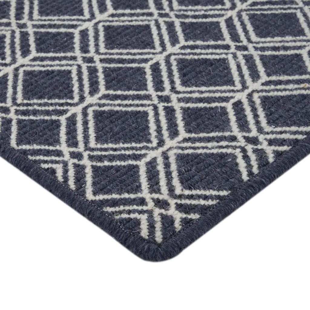 The Harbor Custom Carpet offers a versatile and durable flooring solution, designed to fit specific spatial requirements. This custom-sized carpet is crafted from a wool polyester blend, combining the natural softness and resilience of wool with the strength and easy-care properties of polyester. Constructed with a flat weave, the carpet features a low-profile design that is both robust and practical for high-traffic areas. Its tightly woven surface contributes to its durability and resistance to wear. The design incorporates a subtle geometric pattern with a 4" W x 4" L repeat, adding a textured visual interest. This pattern is presented in a blue color, providing a calming and sophisticated aesthetic suitable for various interior designs. Manufactured in India, the Harbor Custom Carpet reflects traditional craftsmanship adapted for modern needs. It is available in a wide range of custom dimensions, from 2' x 5' up to 13' x 30'. This flexibility allows for precise fitting in rooms, hallways, or commercial spaces, minimizing waste and ensuring a tailored look. Ideal for both residential and commercial applications, this carpet provides a blend of style, comfort, and enduring performance.