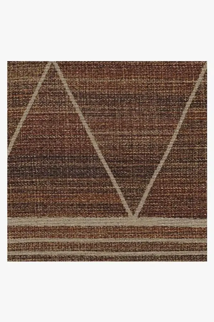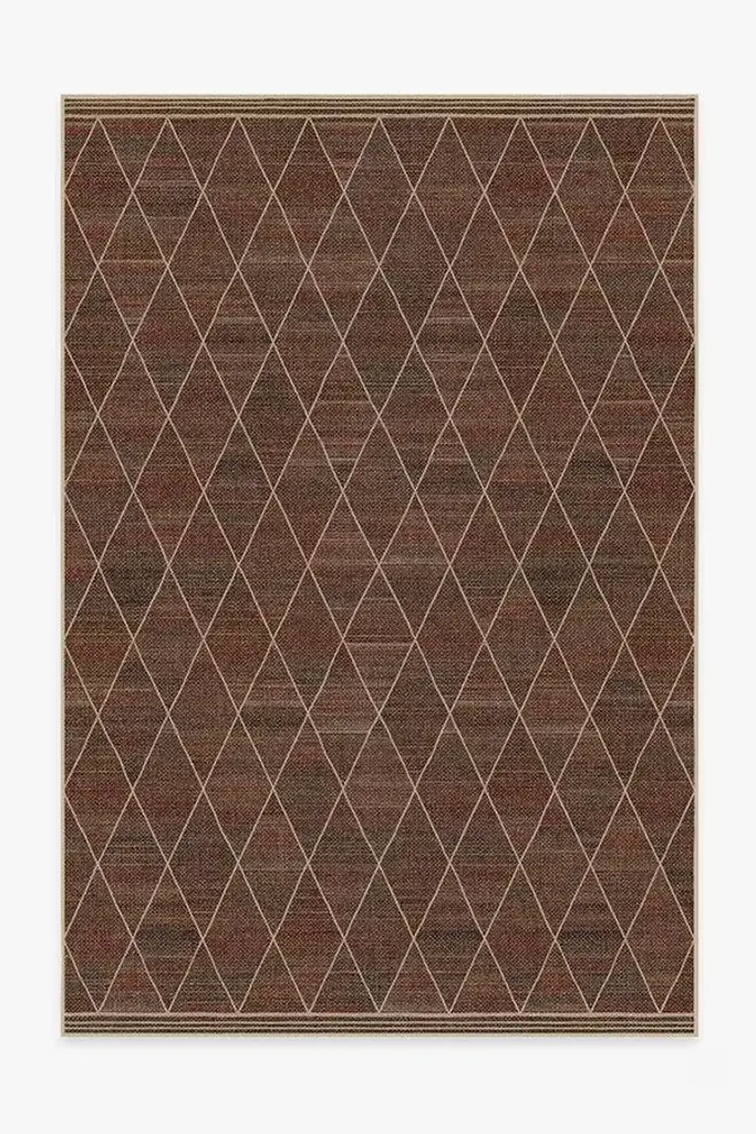 Standard PadWarm up any space. Rich shades of red, orange and brown blend together to create a striated backdrop, accented with a tan diamond pattern. Its woven texture gives this washable rug a natural jute-like appearance. Made with recycled + virgin polyester, and polyurethane.