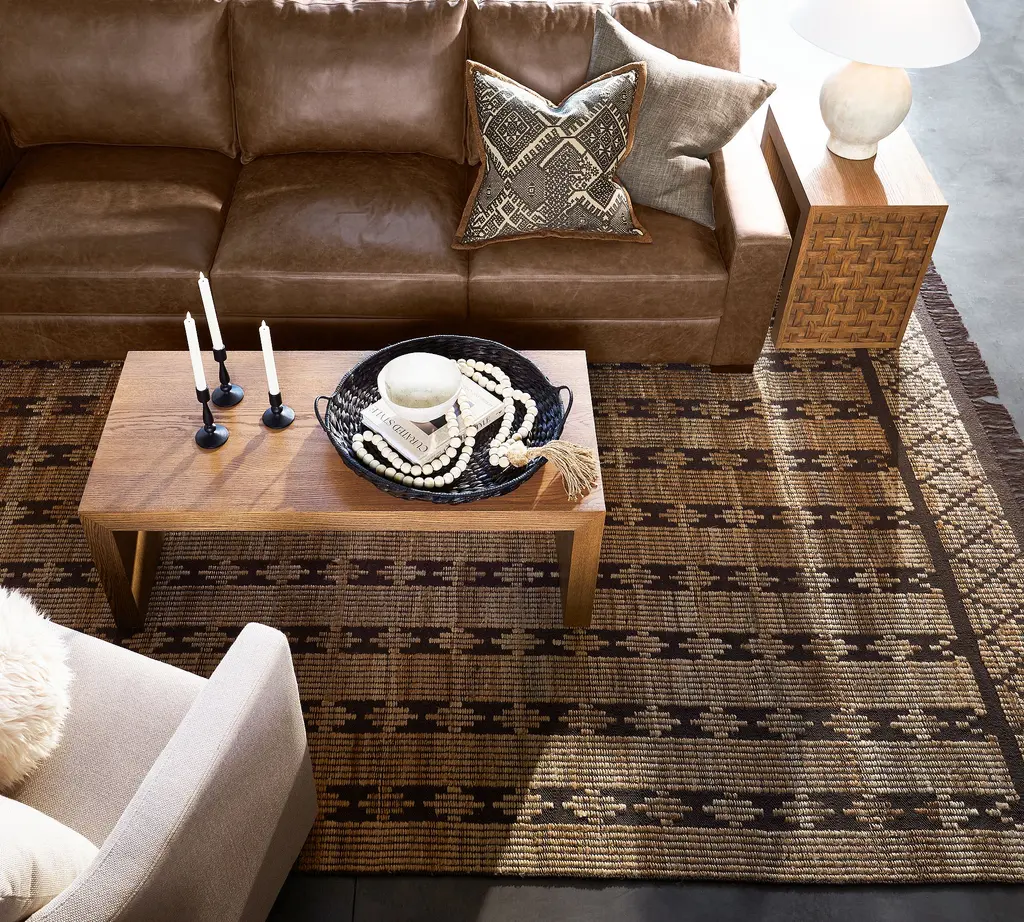 Handwoven from jute with a kilim-inspired design, this rug infuses global sensibility into any room. The earthy palette and low profile make it endlessly versatile and easy to layer, whether styled beneath a coffee table or paired with a cozy wool rug. Naturally resilient and effortlessly stylish, it’s a beautiful blend of artistry and function.