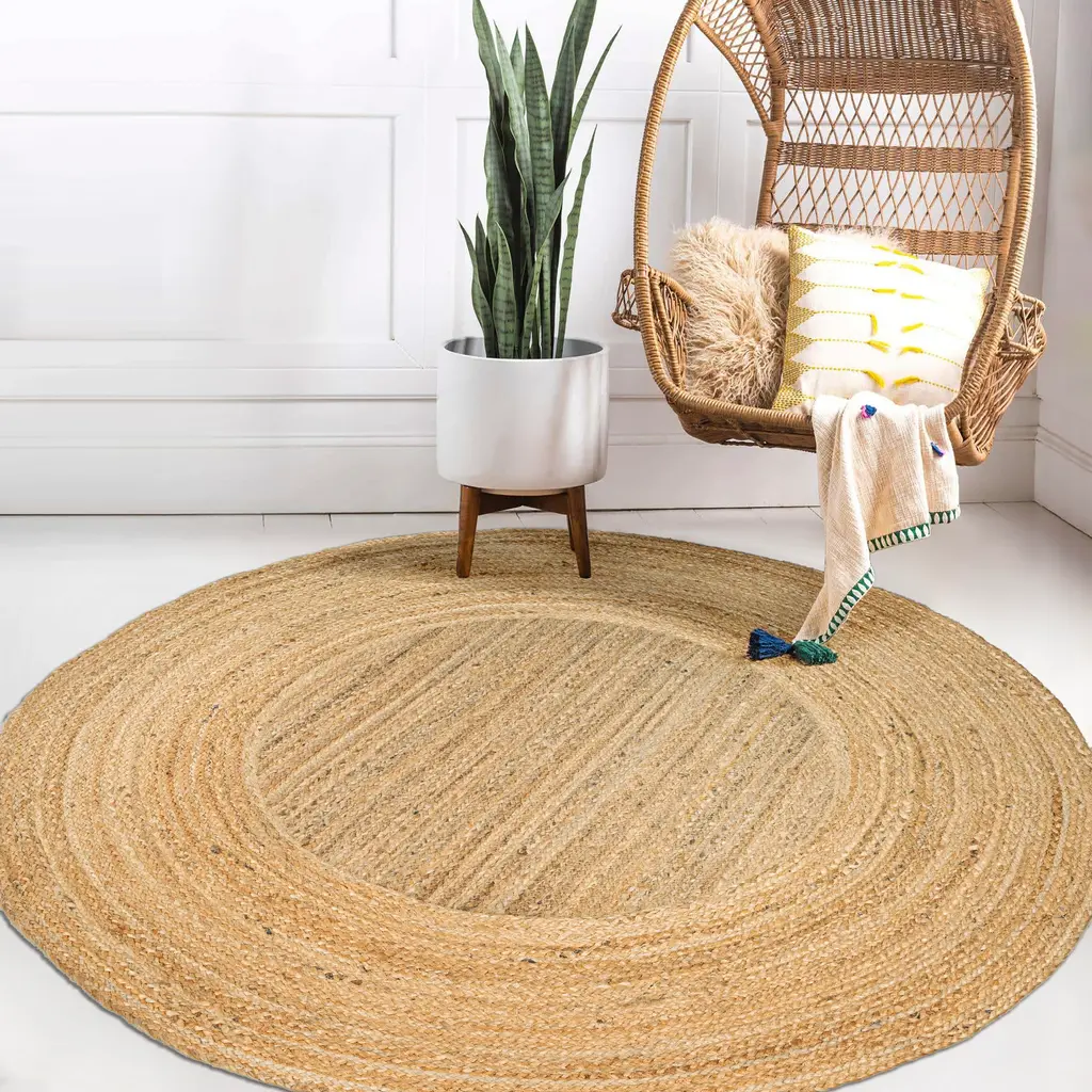 Flat-weave jute is the perfect casual rug for a Boho-inspired, minimalist space. Handcrafted from natural fibers, this rug's simple border design adds a cozy layer to the living room, home office or bedroom. Durable and easy to care for, our round jute rug adds low-key style to traditional, modern and coastal interiors.
