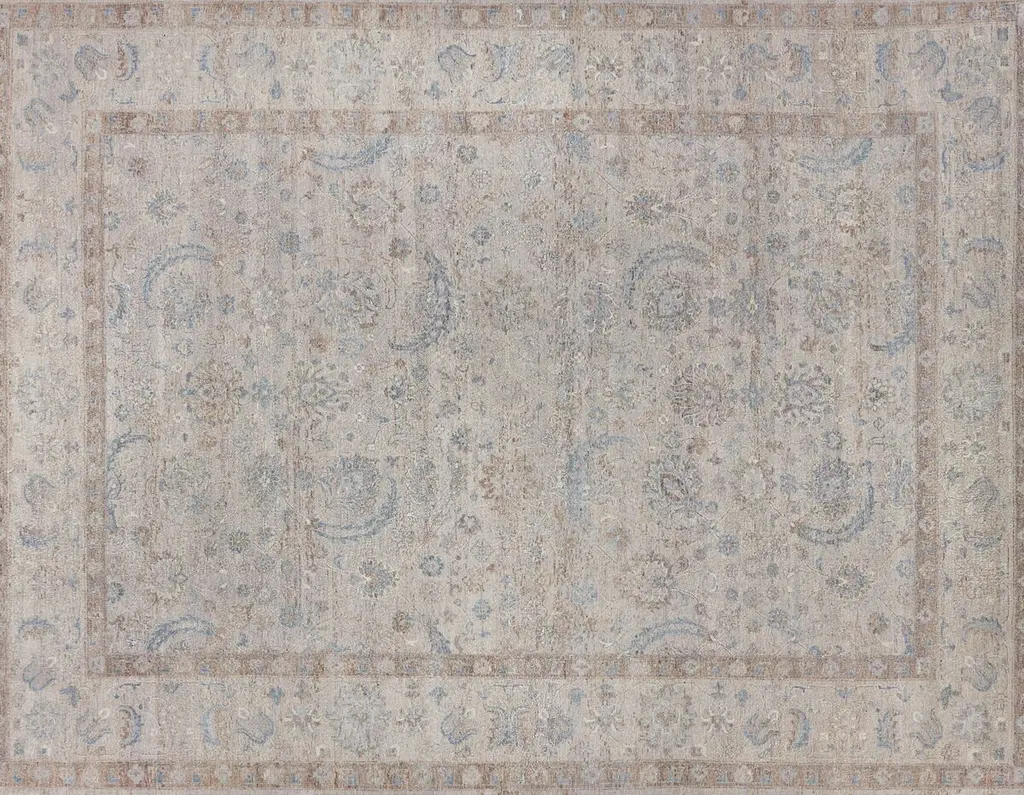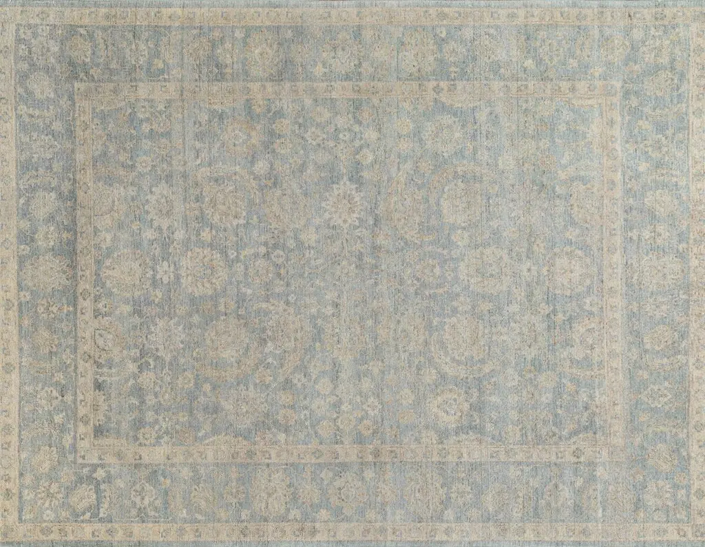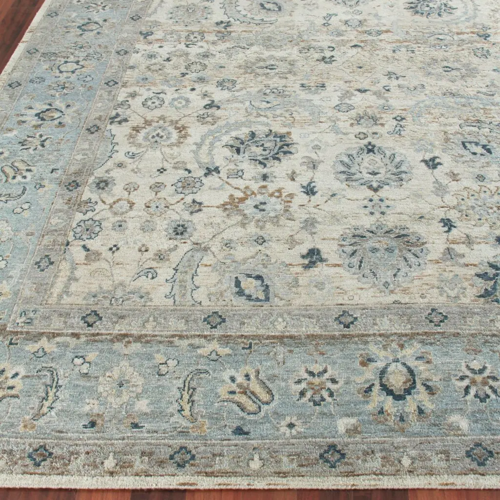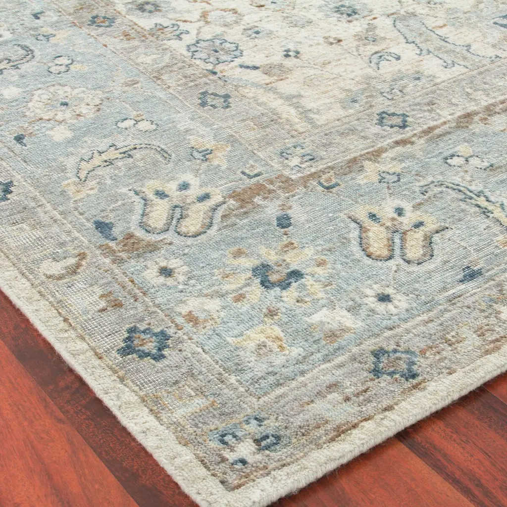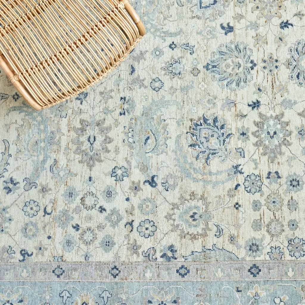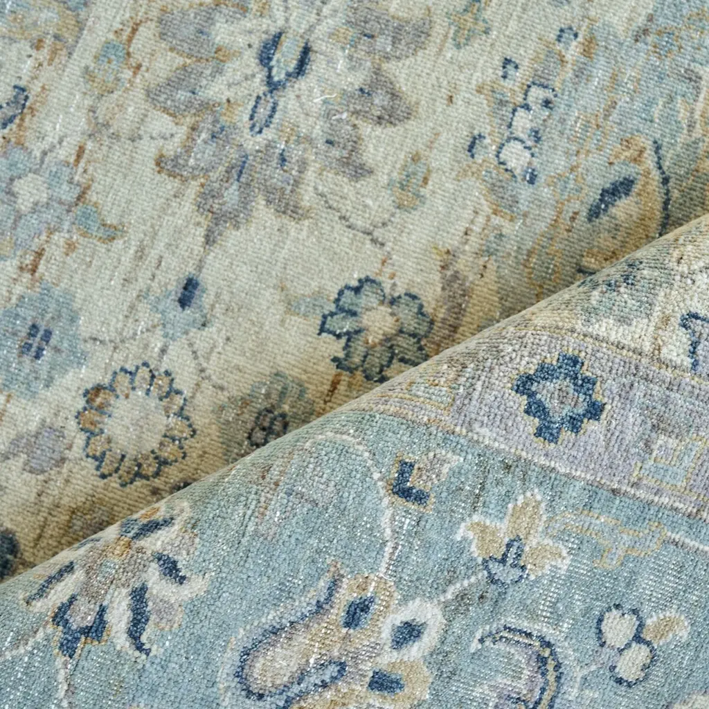 Hand-knotted of plush wool, this rug was hand-sheared and underwent special washing processes to obtain the look and feel of a treasured heirloom. A rug pad is recommended to help prevent slipping.