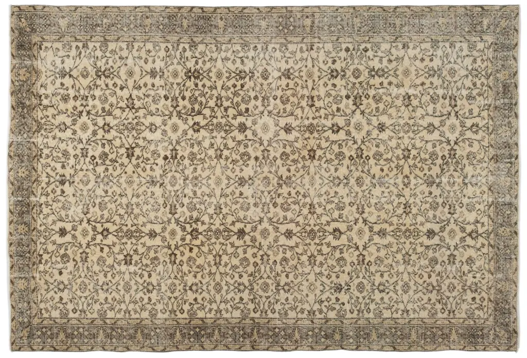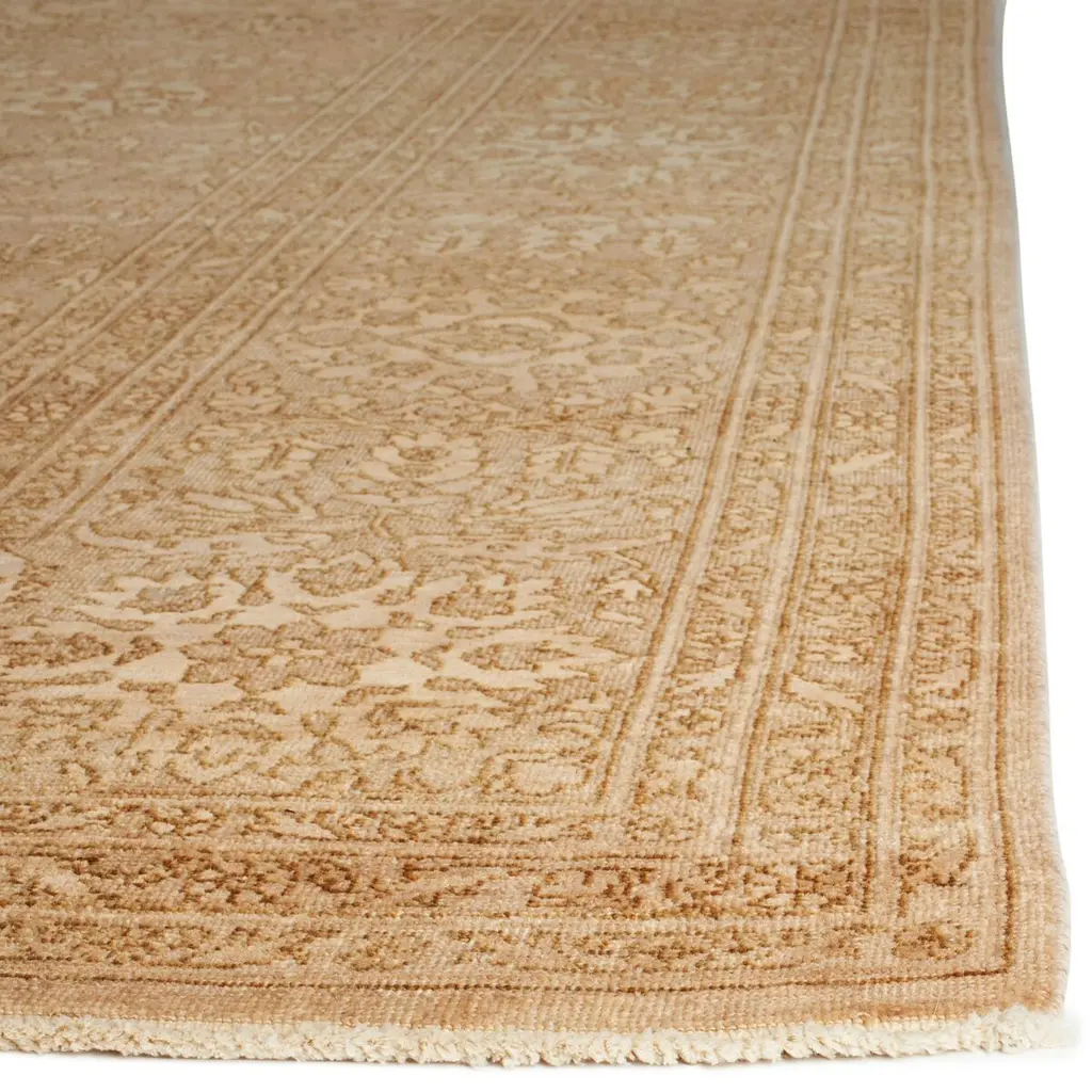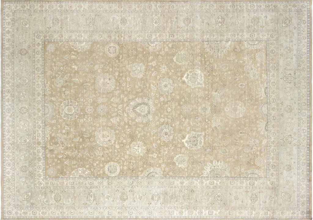 Inspired by Tabriz carpets from the 18th century, this impressively detailed wool rug grounds any space with elegance and sophistication. Each rug is meticulously knotted by hand, washed several times, dried in the sun, and sheared to create an aged appearance. We recommend a rug pad to extend the life of your rug and keep it securely in place.