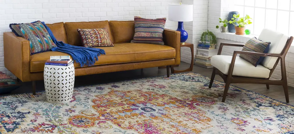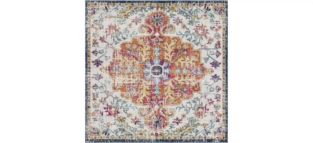 The Harput Round Rug showcases a traditional inspired design that exemplifies timeless styles of elegance, comfort, and sophistication. The meticulously woven construction boasts durability and will provide natural charm into your space.