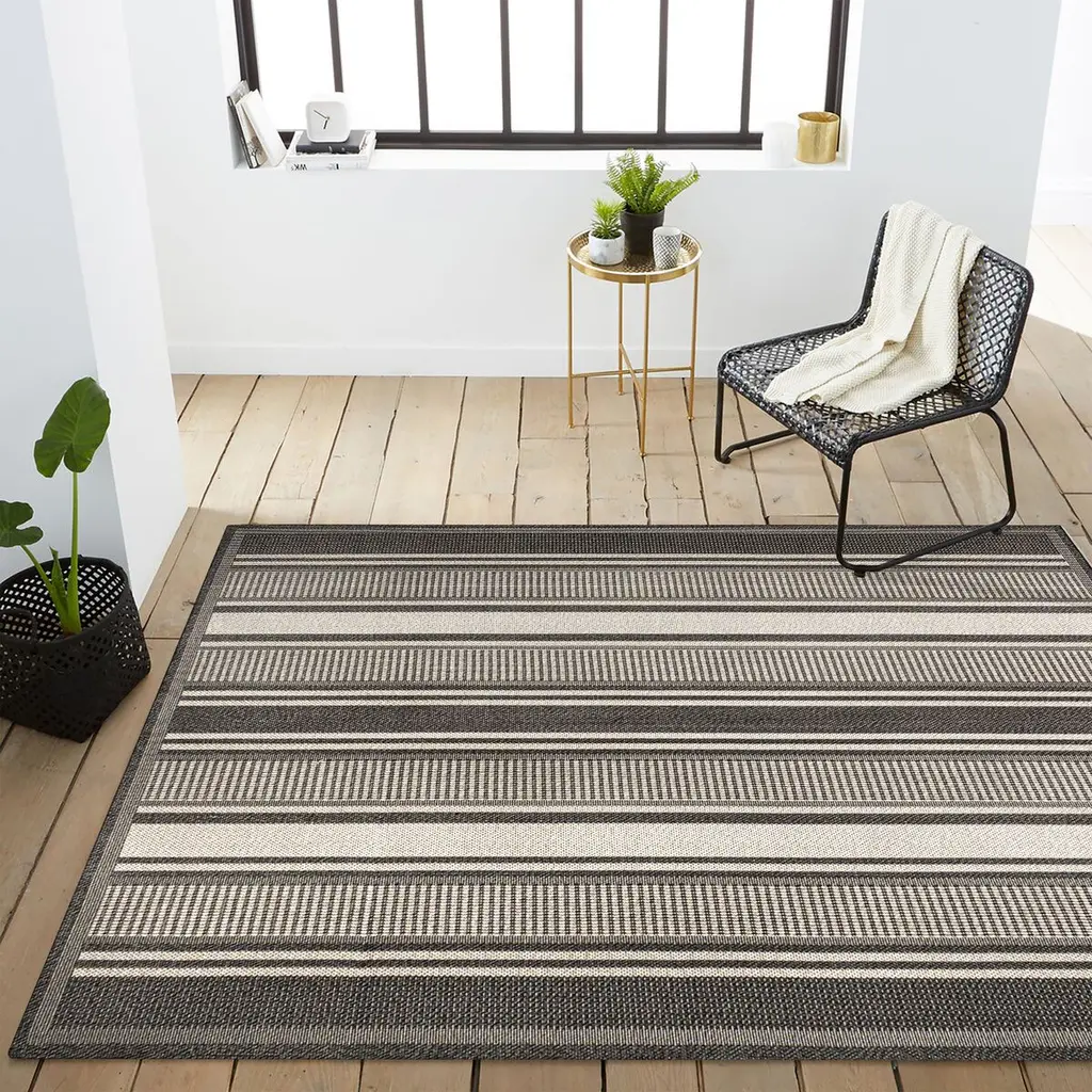Featuring vertical stripes within horizontal ones, this polypropylene rug will bring timeless ease to outdoor and indoor spaces alike. A rug pad is recommended to help prevent slipping and extend the life of the rug.