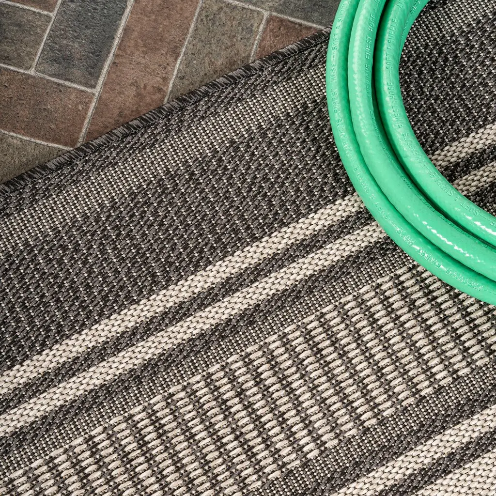 Featuring vertical stripes within horizontal ones, this polypropylene rug will bring timeless ease to outdoor and indoor spaces alike. A rug pad is recommended to help prevent slipping and extend the life of the rug.