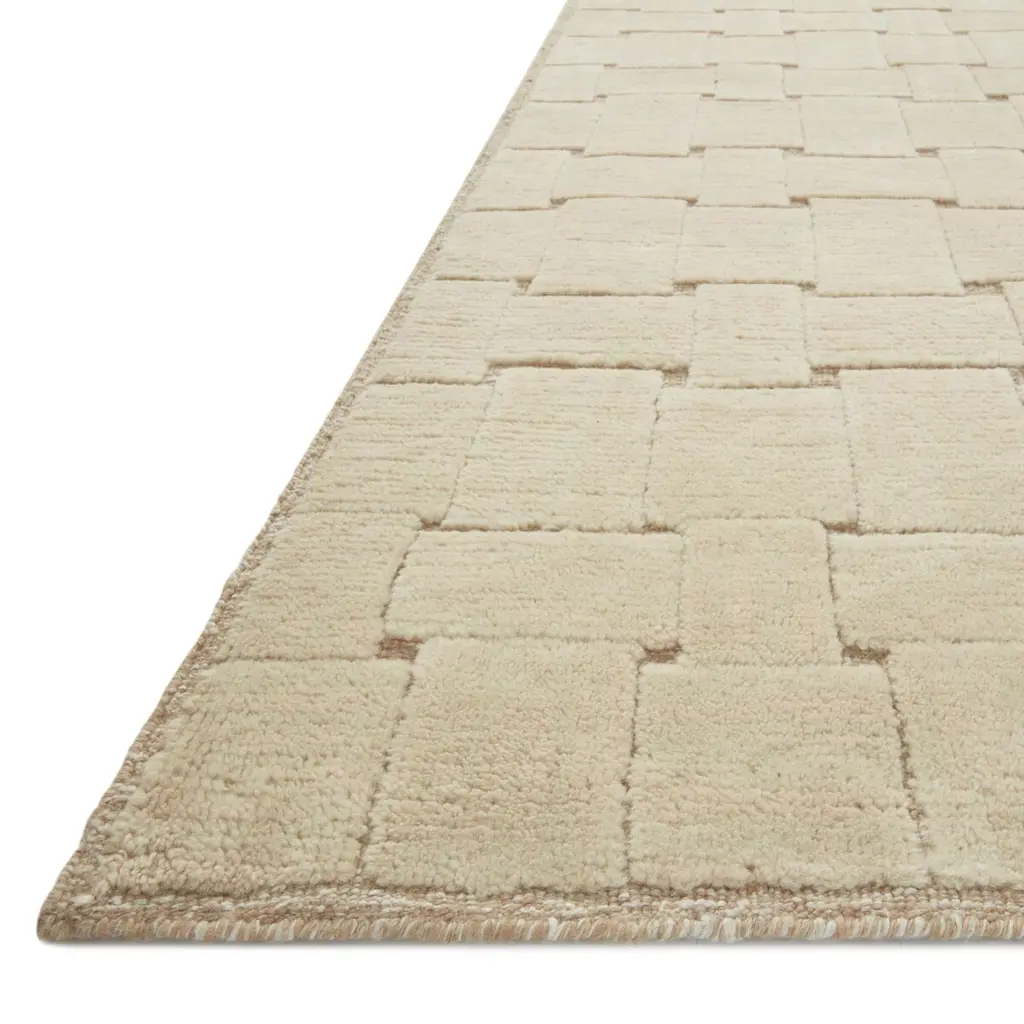 The high-low basket-weave pattern of this hand-knotted rug coupled with its quiet neutral tones makes it a welcome addition to traditional and contemporary rooms alike. Viscose adds a subtle sheen to the plush wool. A rug pad is recommended to prevent slipping and extend the life of the rug.