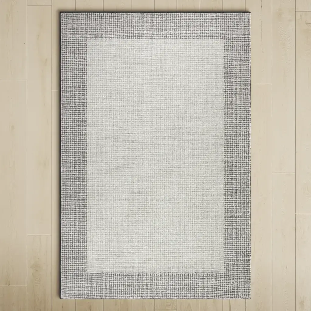 Ground your space in cozy yet elevated style with this handmade area rug. It's tufted by hand from naturally-durable wool, and it showcases an eye-catching border design in shimmering beige and cream hues. We love how the medium pile adds warmth and texture to your floors while still being easy to vacuum. Best of all, the soft color palette makes this rug a breeze to mix and match with all your decor. Pro-tip: Pair this piece with a rug pad (sold separately) for extra cushioning and to help keep it in place.