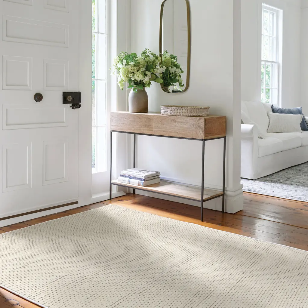 Handcrafted in the style of your favorite luxurious knits, this felted cotton and wool rug provides delightful softness underfoot. The familiar knitted V pattern is rendered either in solid colors or variegated tones, providing a cozy look wherever you might want one. Upon receiving, vacuum your rug once a week on the lightest setting. Shedding of loose fibers may occur but will diminish over time. Expect the most shedding to occur within the first few months.