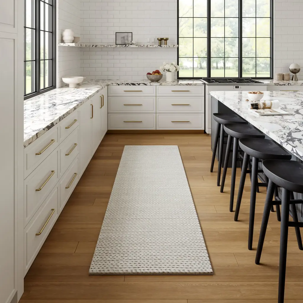 Handcrafted in the style of your favorite luxurious knits, this felted cotton and wool rug provides delightful softness underfoot. The familiar knitted V pattern is rendered either in solid colors or variegated tones, providing a cozy look wherever you might want one. Upon receiving, vacuum your rug once a week on the lightest setting. Shedding of loose fibers may occur but will diminish over time. Expect the most shedding to occur within the first few months.