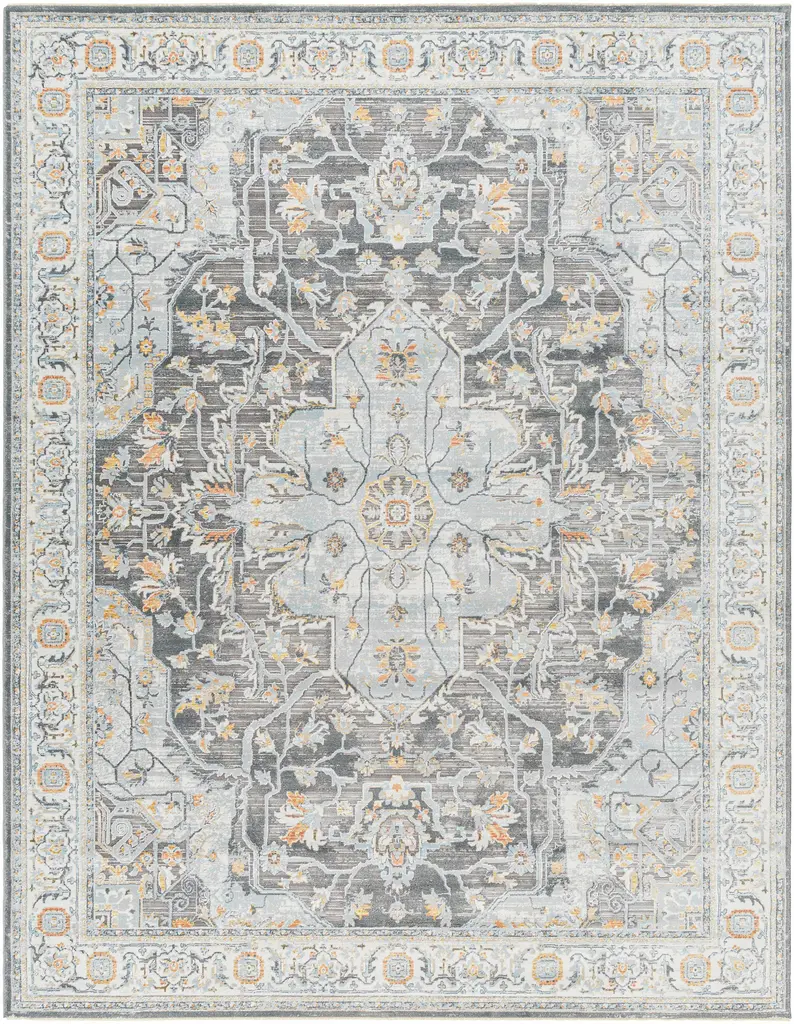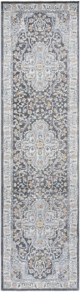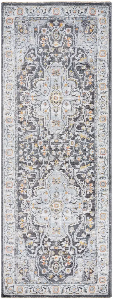 Collection: Hayfa Colors: Light Gray, Gray, Medium Gray Construction: Machine Woven Material: 50% Polyester,50% Polypropylene Pile: Medium Pile Pile Height: 0.31" Styles: Traditional Made In: Turkey Thickness: 0.35" Fringe Length: 0.43" Price Range: $$$$$ (Affordable)