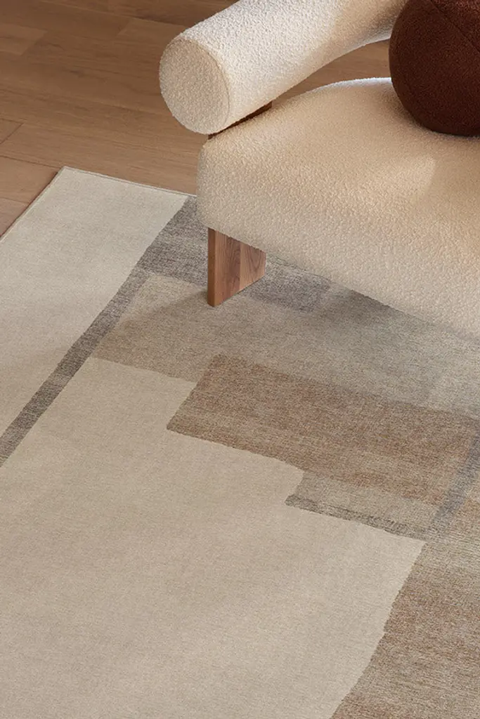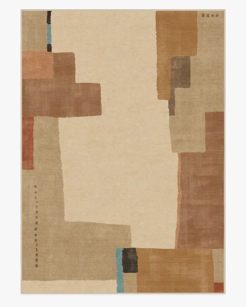 Unexpected and versatile, our Haylan Ivory & Copper Rug features an artistic blend of copper, brown, and neutral abstract shapes against a soft ivory background. Water-resistant, stain-resistant, and machine-washable. Rug colors may vary slightly according to your device and the lighting in your space.