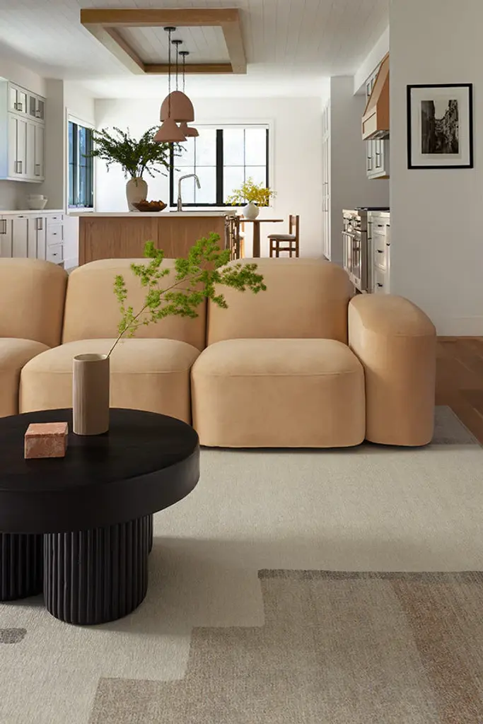 Unexpected and versatile, our Haylan Ivory & Copper Rug features an artistic blend of copper, brown, and neutral abstract shapes against a soft ivory background. Water-resistant, stain-resistant, and machine-washable. Rug colors may vary slightly according to your device and the lighting in your space.