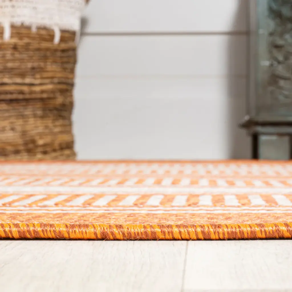 Inspired by the clean lines of modern design, our unique stripe-on-stripe rug has a durable low pile. This versatile two-tone pattern is woven in contrasting colors for a low-key, minimalist look. Add graphic punch to your living room, dining room, bedroom, or porch with this easy-care, family-friendly rug.Features:• Durable woven design with a short 0.25" pile• The terracotta and ivory color scheme adds a crisp, modern look to any space• Made from easy-care polypropylene - just sweep, vacuum or hose down with mild soap and water• 100% Polypropylene• No backing, use of rug pad is recommended (sold separately)• Power Loomed in Turkey• Actual Dimension: 2 ft x 8 ft.• Color: Orange/Cream• Thickness measures: 0.25 in.• Available in multiple sizes and/or colorsRug Care:• Vacuum regularly and spot clean as needed; avoid direct and continuous exposure to sunlight; use brushless vacuum; remove spills immediately; if liquid, blot with clean, undyed cloth by pressing firmly around the spill to absorb as much as possible; for hard to remove stains, professional rug cleaning is recommended; store in a dry, well ventilated area and rotate for consistent wear• Packing and shipping may cause temporary creases in rugs, which will flatten out after a week on the floor; to expedite the process, try back-rolling your rug before laying it down, and then allow ample time for the remaining creases to relax• Please Note: Due to differences in monitors, some rug colors may vary slightly. Lengths and widths may vary from the published dimensions. Patterns may vary slightly according to shape and size selected.About us:Style your floors with JONATHAN Y. By combining fine craftsmanship and design, this New York creative studio is bringing fashion to your floors. The collection mixes sustainable organic materials, vibrant colors and trend worthy styles to create JONATHAN Y''s distinctive catalog of rugs.