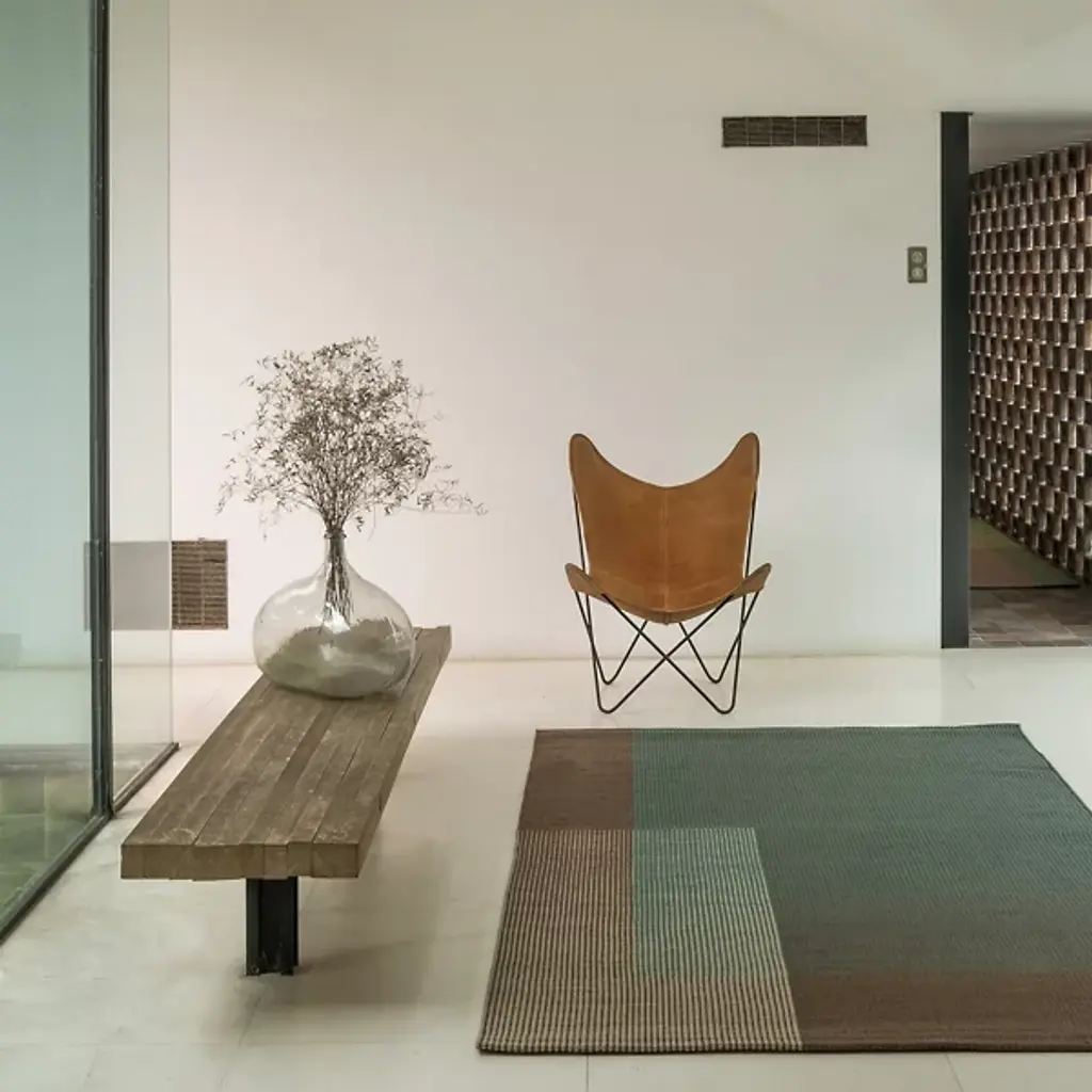 The Haze Area Rug from Nanimarquina is an artful reference to the natural phenomenon of the same name, bringing colors together with harmony. Designer Begüm Cana Özgür takes a hands-on approach to design. This hands-on approach lends to the rug’s direct hand-loomed construction. Artisans combine various strands of contrasting colors in an overlaying geometric design. These colors draw from those seen in nature. The layered sections of the design translate to intriguing diffused hues. Crafted from a blend of New Zealand and Italian wool, this rug also delivers comfort physically with a low-profile soft surface.