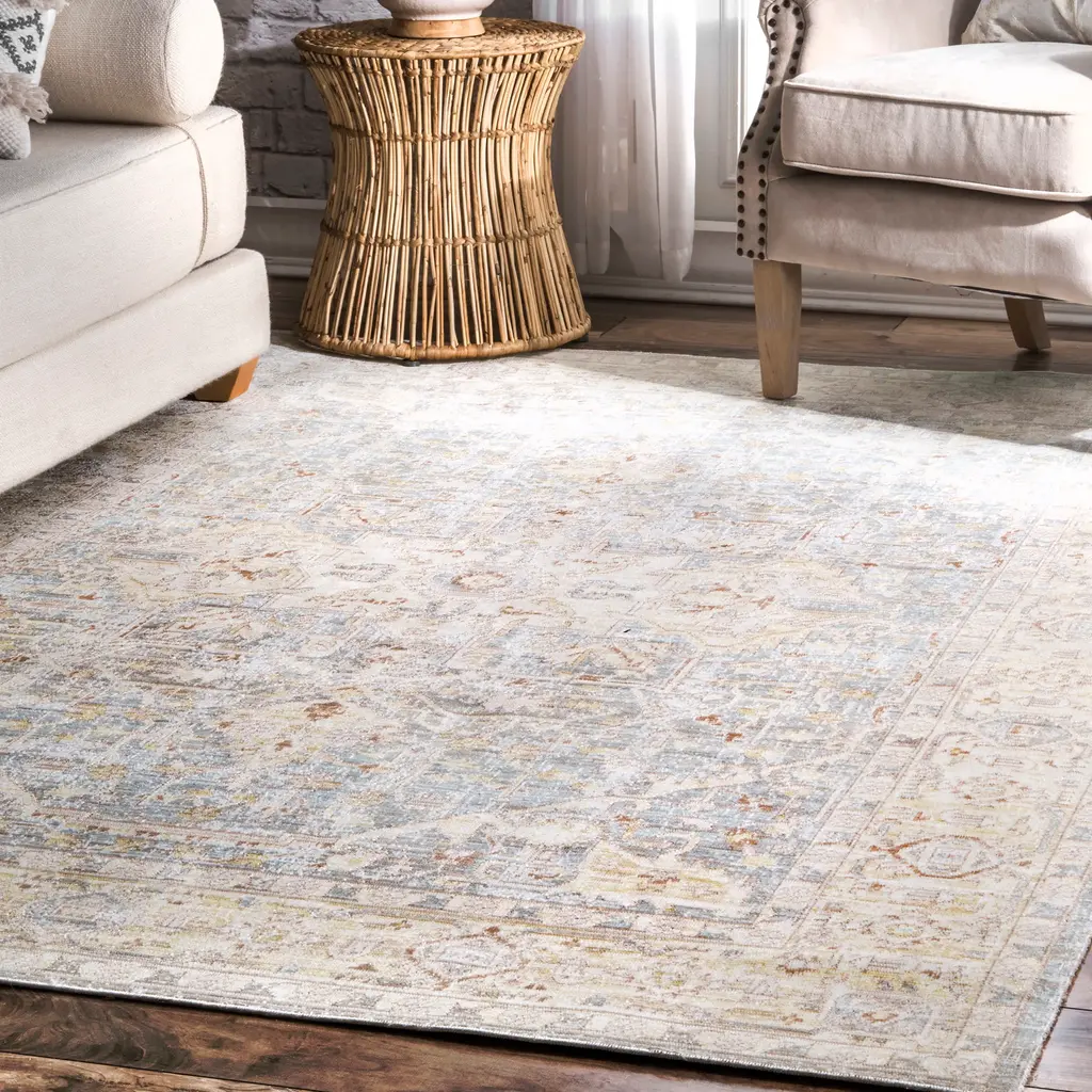 The missing piece to your abode! This area rug offers a regal look that is both casual and sophisticated. A vintage-inspired choice mimics a timeless appearance, bringing an heirloom element to any home decor. The color scheme gives this rug a serene vibe, while the durable composition offers rich quality and elegance. The entire look comes together as edgy yet refined, resulting in a modern look that can also fit in traditional design schemes. Enjoy your time at home today with our pet-friendly and easy to clean area rugs.