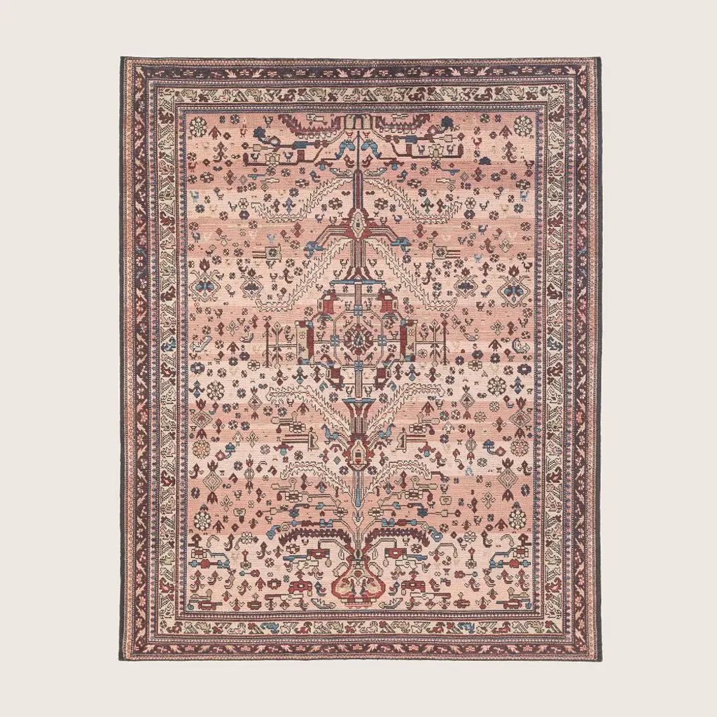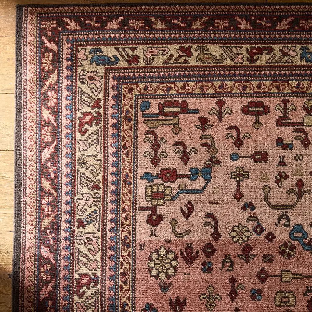 Durable for decades. In 100% RWS-certified wool, this handknotted rug combines vintage design with a versatile palette of warm tones and neutrals for a lasting layer.