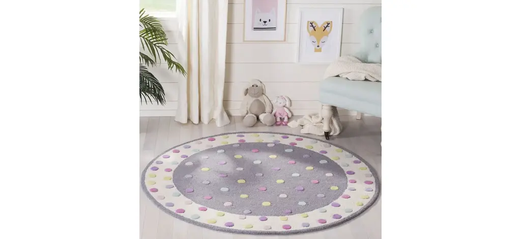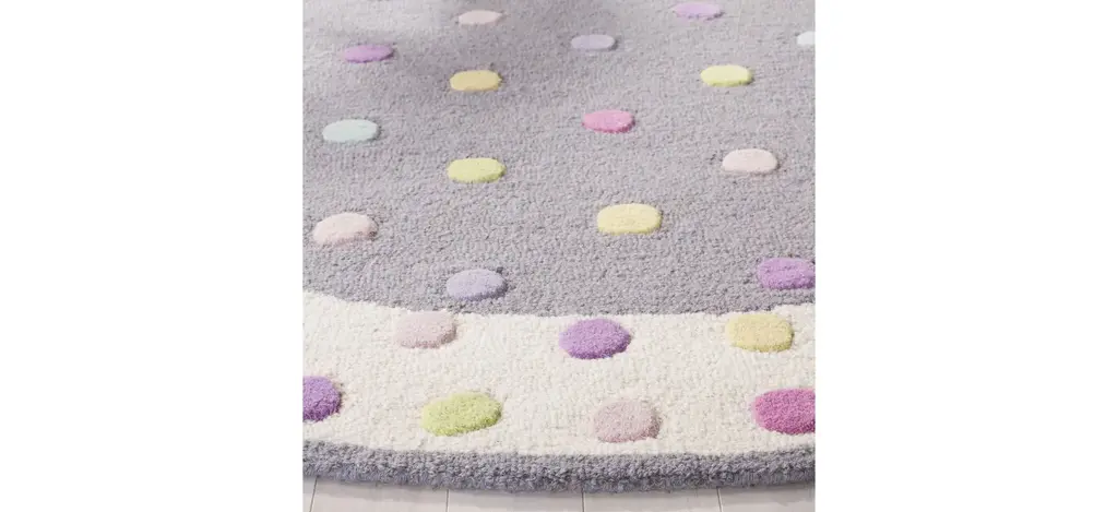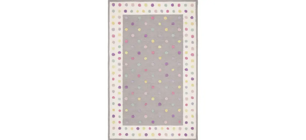 The Heidi Kid's Rug features a colorful design with polka dots for a fun addition to your kid's room. These rugs are made with pure soft wool and hand-tufted to a cotton backing for added cushion.