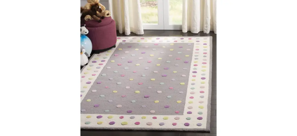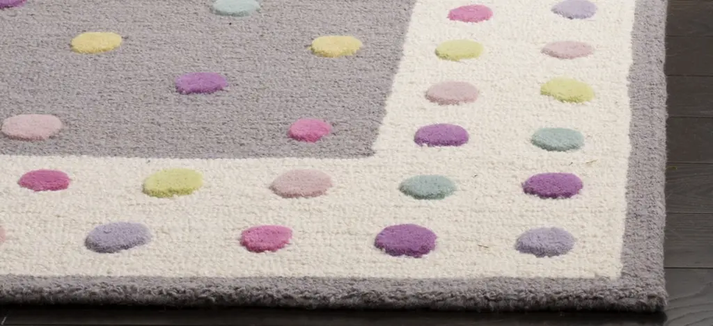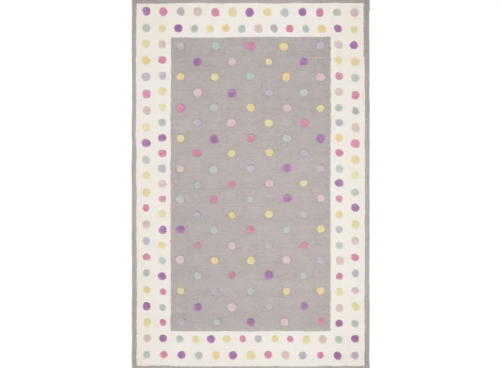 The Heidi Kid's Rug features a colorful design with polka dots for a fun addition to your kid's room. These rugs are made with pure soft wool and hand-tufted to a cotton backing for added cushion.