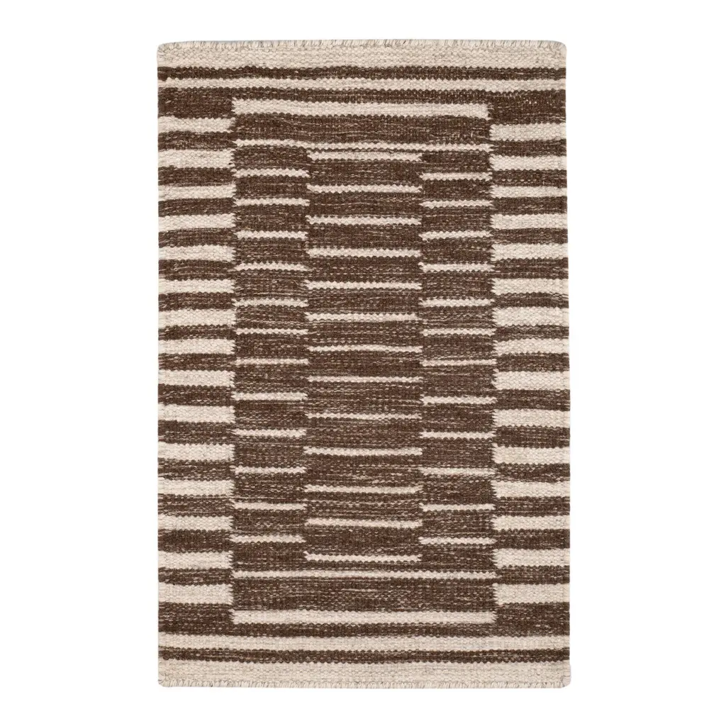 Create the illusion of layers with this gorgeous, chunky flatwoven wool rug. Featuring offset ladder stripes made from wool and cotton fibers, this eye-catching piece makes a bold graphic statement. Part of our collaboration with award-winning designer Marie Flanigan, it's hand-loomed by artisans using a traditional dhurrie weave. Soft underfoot, it will add visual depth to any space and ground your room in style.