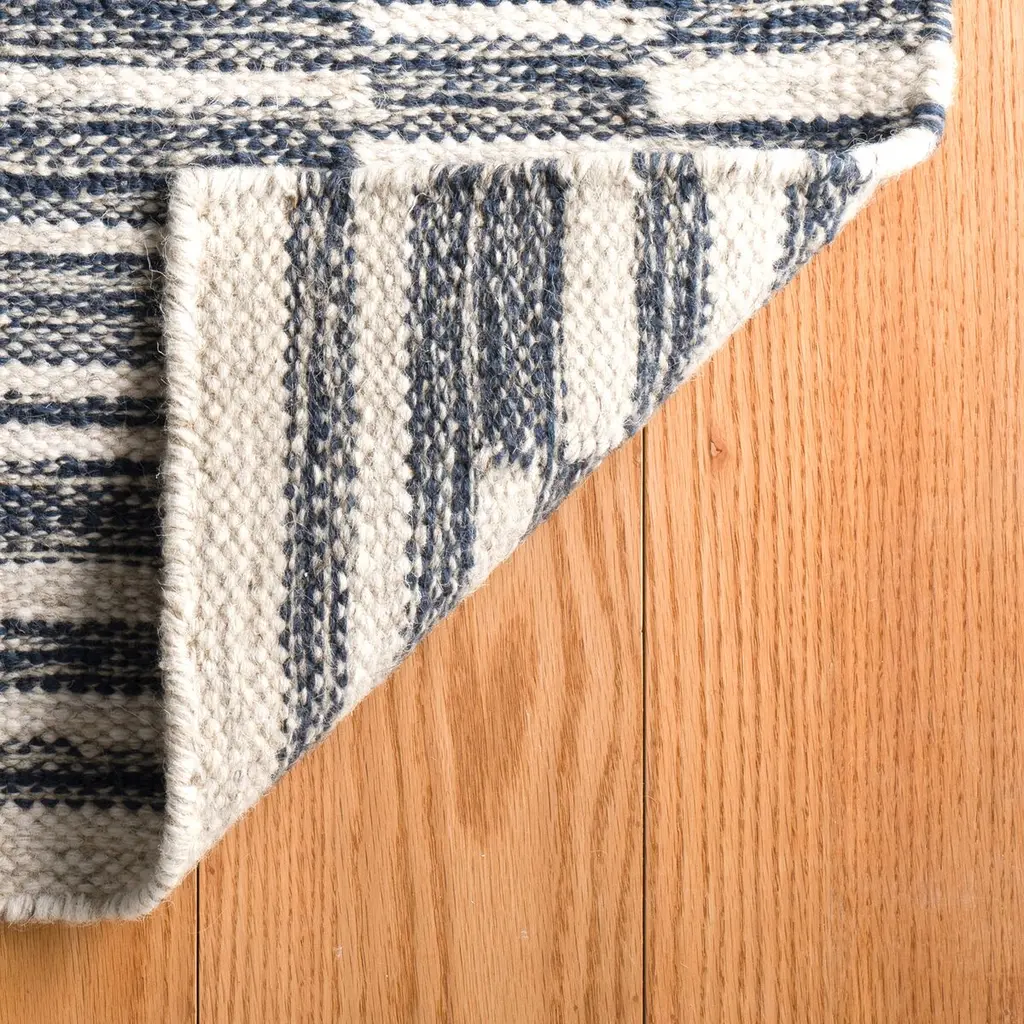 Create the illusion of layers with this gorgeous, chunky flatwoven wool rug. Featuring offset ladder stripes made from wool and cotton fibers, this eye-catching piece makes a bold graphic statement. Part of our collaboration with award-winning designer Marie Flanigan, it's hand-loomed by artisans using a traditional dhurrie weave. Soft underfoot, it will add visual depth to any space and ground your room in style.