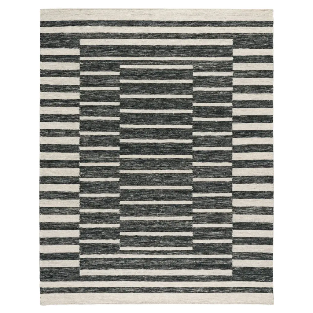 Create the illusion of layers with this gorgeous, chunky flatwoven wool rug. Featuring offset ladder stripes made from wool and cotton fibers, this eye-catching piece makes a bold graphic statement. Part of our collaboration with award-winning designer Marie Flanigan, it's hand-loomed by artisans using a traditional dhurrie weave. Soft underfoot, it will add visual depth to any space and ground your room in style.