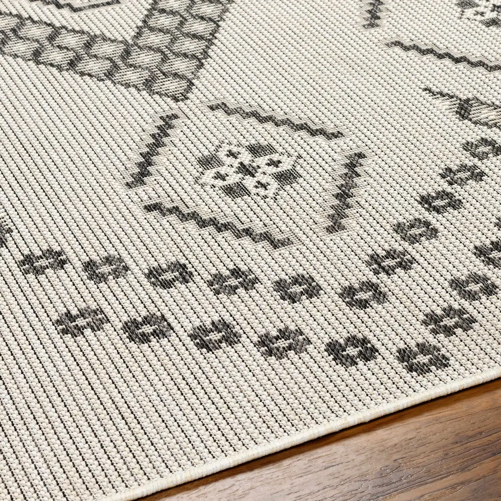 Collection: Helga Colors: Charcoal, Beige, Medium Gray, Medium Brown, Gray Construction: Machine Woven Material: 100% Polypropylene Pile: No Pile Styles: Transitional,Bohemian Backing: Outdoor Latex Outdoor Safe: Yes Made In: Turkey Thickness: 0.39" Price Range: $$$$$ (Most Affordable)
