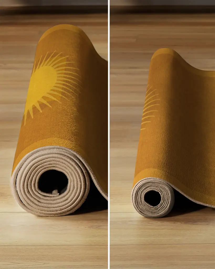 Sun-drench your favorite room with our Matthew Williamson Helios Gold Rug. Inspired by Matthew���s travels to Spain, this beaming design combines warm, minimalist shapes that mimic a retro aesthetic. The light yellow border and warm yellow medallion radiate against a deep ochre background. Water-resistant, stain-resistant, and machine-washable. Rug colors may vary slightly according to your device and the lighting in your space.