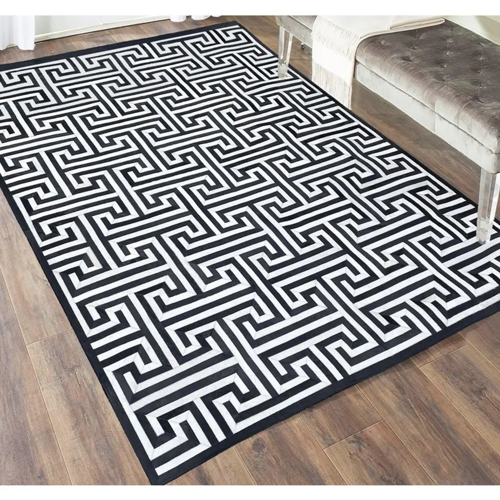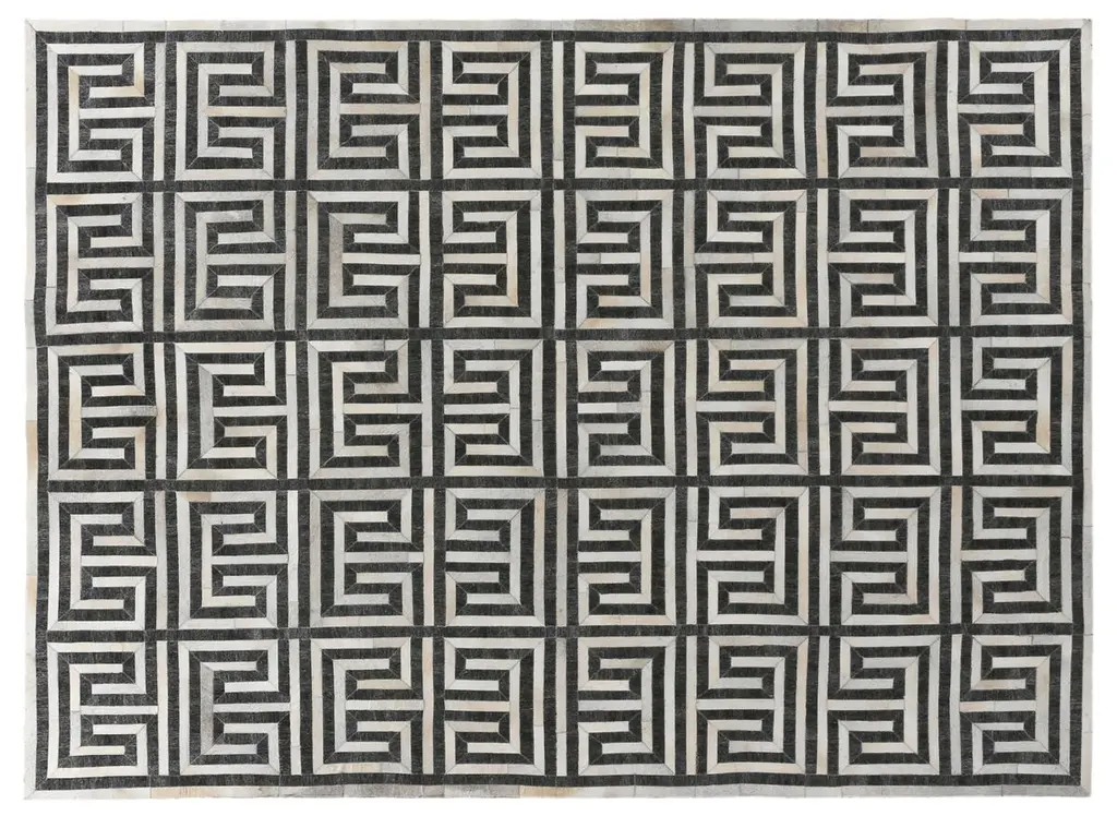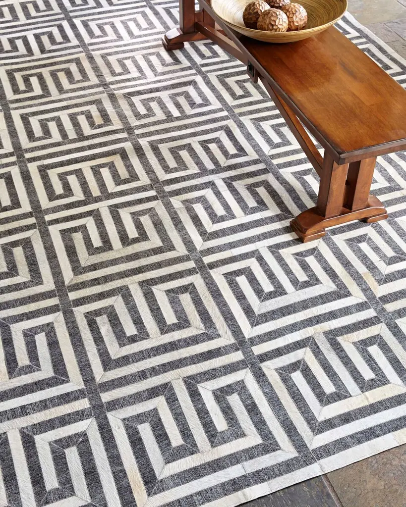 Boldly rendered in high-contrast hues, this rug is carefully hand-stitched using strips of natural cowhide to create its allover design. We recommend a rug pad to extend the life of your rug and keep it securely in place.